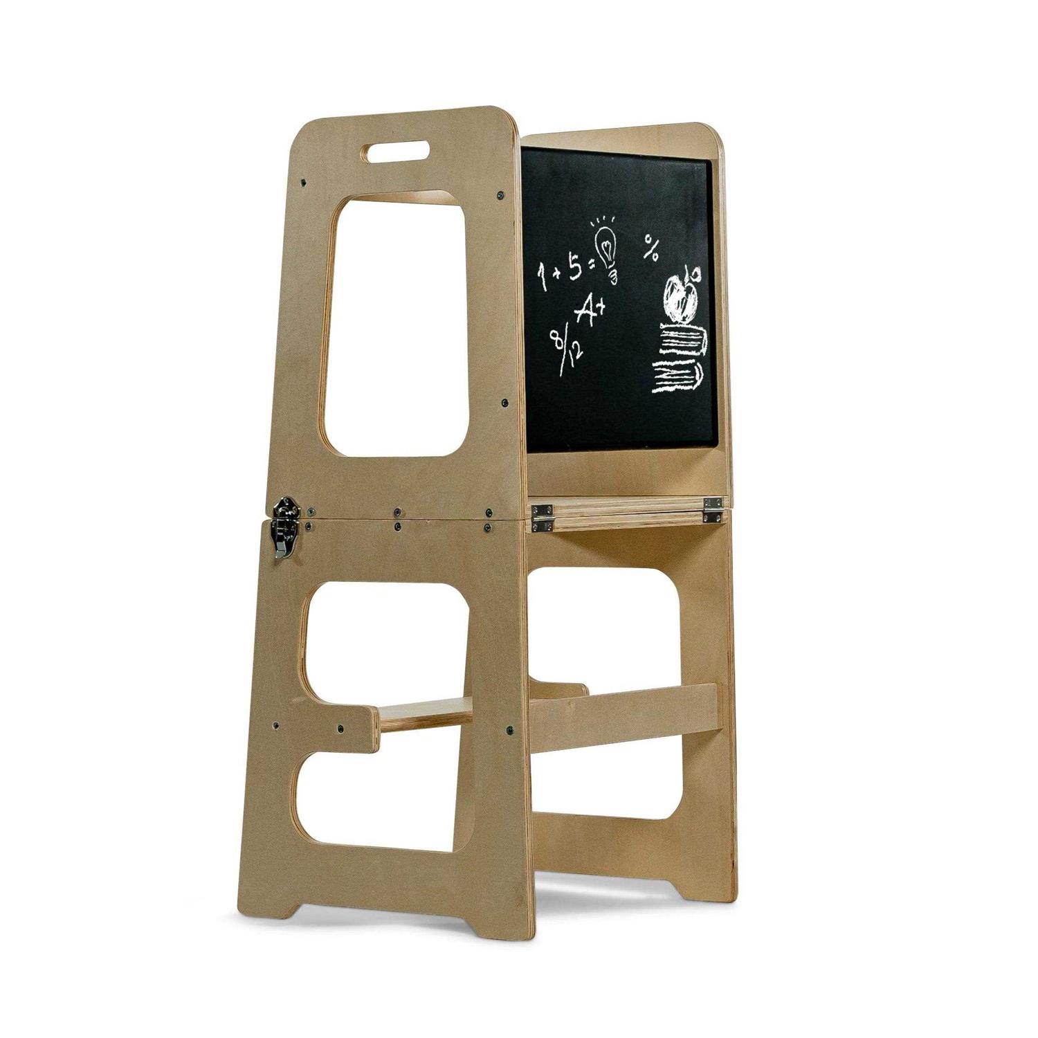 Meet The Date, the ultimate step stool that’s redefining functionality and creativity in every little nook of your home! Crafted with love and innovation, this patented design isn’t just a step stool; it’s a chameleon of the furniture world, ready to adapt to your and your child’s ever-changing needs. Imagine a world where your little helper gains independence, self-confidence, and a plethora of skills, all from a piece of furniture—that’s the Date for you. Kitchen tower Desk Step Stool Chalkboard This magical helper transforms seamlessly from a step stool, bringing your child to the perfect height to join in on kitchen activities or to reach the bathroom sink for toothbrush time. With a simple flip, it becomes a table for all things fun and educational—coloring, crafting, or even serving as a desk for eager young minds. And for the cherry on top, it boasts a blackboard surface, inviting endless creativity or a unique learning experience. The Date is not only a wonder for kids but also a dream for parents. Made from premium ¾ inch birch plywood, it meets all US safety regulations, ensuring it’s as safe as it is strong. With side handles, a back-guard rail, and no need for professional installation, it’s designed to keep your little ones secure. Welcome to the world of the Date, where fun meets function in the most delightful way!
