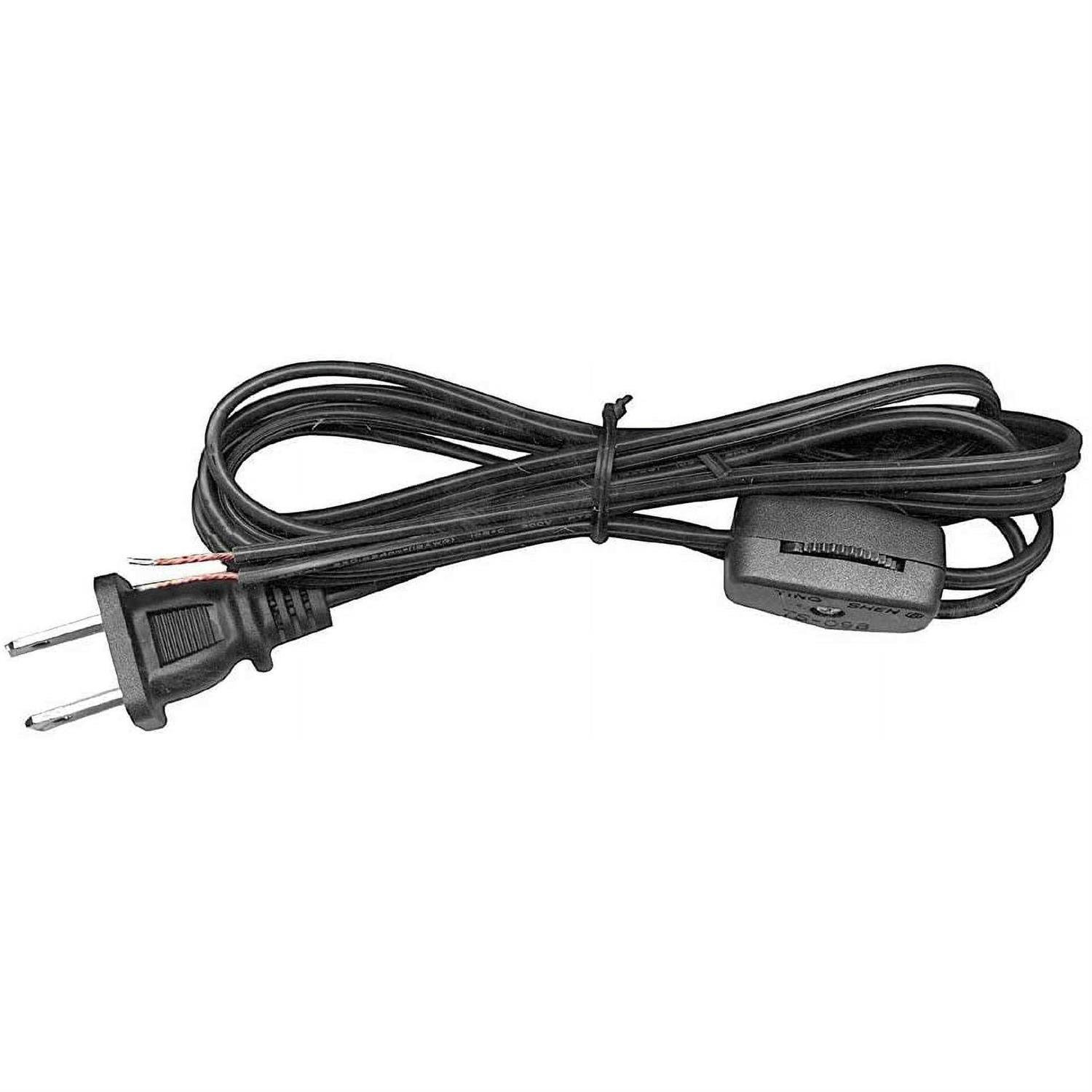 - Black 8 foot lamp cord with matching molded polarized plug and matching inline rotary switch.