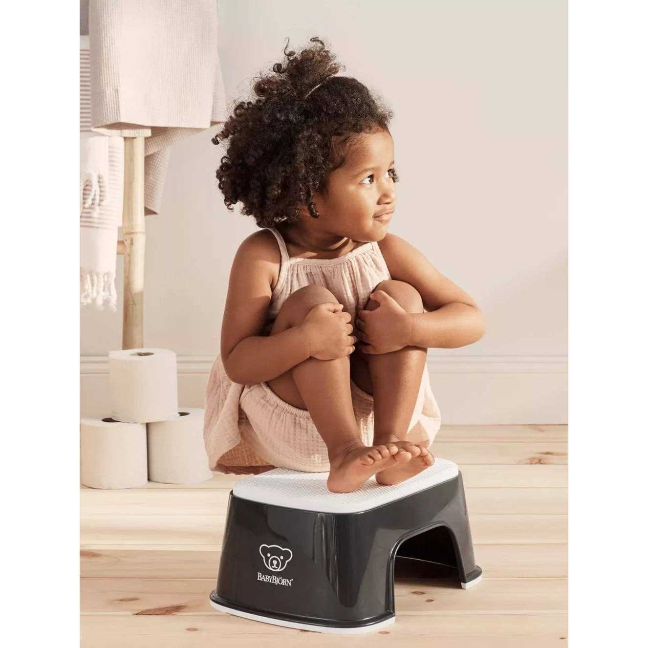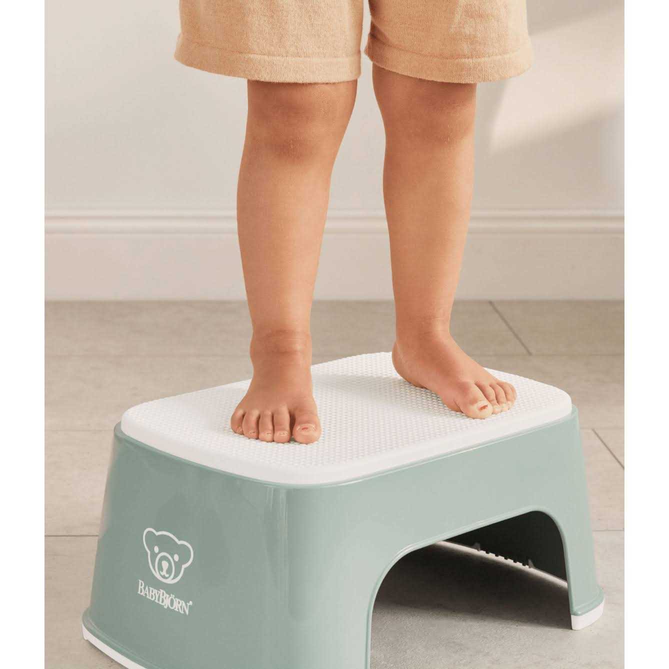 A small step up for a child, a giant step up for their selfconfidence! Babybjorn step stool makes it easy for your child to reach the toilet or bathroom sink on their own. The step Stool has a nonslip rubber surface that provides a good grip, even if your child has wet and fidgety feet. The step stools smart design and premium material give it a long lifespan, with many areas of use for both children and adults. Our step stool is available in many fantastic colors that coordinate with our other products.