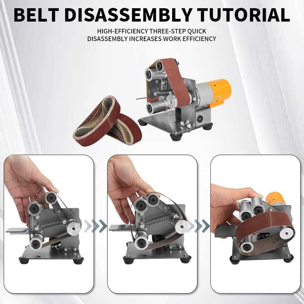 The mini belt sander also equipped with 7 speed adjustment, you could adjust the speed you need, very convenient. 【HIGH QUALITY BELT SANDER】Mini DIY Belt Sander, made of fine quality aluminum alloy, not easy to rust, wear-resistant, has a long service life. non-slip and dustproof. The base is stable and sturdy, can be placed on the table, labor-saving.The sand belt is uniform, not easy to fall off, more wear-resistant, and of high quality. 【Adjust tightness and verticality】The angle of the worktable of the power belt sander can be adjusted at will, which is convenient to use. Belt knife sharpener has super powerful motor, no-load speed: 4500-9000RPM can grind metal, knife making, wood, acrylic and other materials well. Grinding high hardness materials, efficient and stable, strong and practical. 【DOUBLE BEARINGS】The all copper motor adopts double bearings, high-speed, high-torque, mute, anti-skid design, and runs smoothly. Using high-precision CNC machining, it will not move super-stable during work. 【WIDE APPLICATION】Bench sander belt tool is easy to operate and ideal for home or work use. Suitable for DIY woodworking, metal, acrylic, knife making, crafts, etc. br Features: /b br -The body is made of all 304 stainless steel, which is sturdy and practical, and will never rust br -30° fixed angle sharpener,fixed angle sharpening,sharper。 Three-speed switch supports forward and reverse rotation,Convenient to use, save time and effort br -The worktable angle can be adjusted at will, which is easy to use. The sand of sand belt is uniform, not easy to lose sand, more wear-resistant. br -Using European standard shock absorption, quiet and stable, and more slip-resistant. br -The belt wheel has built-in double bearings, non-slip design, and runs smoothly. br -With a shockproof height adjustable foot pad, you can also remove the foot pad and screw the machine on a table or wood for convenient use. br br Specification: /b br -Motor material: all copper motor br -Body material: 304 stainless steel br -No-load temperature: 20-45 degrees br -Input voltage: 110v-220v br -Output voltage: 12-24v br -Speed regulation mode: seven speed regulation br -Rotation speed: 4500-9000r/min br -Power supply current: 24v-4.5A br -Support forward and reverse br Package: 1Piece Belt Sander +10Pcs abrasive belt+1Piece wool Polishing Wheel+1Piece Grinding Wheel /b br br Note: /b br -Please allow 1-2mm errors due to manual measurement. br -Item color displayed in photos may be showing slightly different on your computer monitor since monitors are not calibrated same.