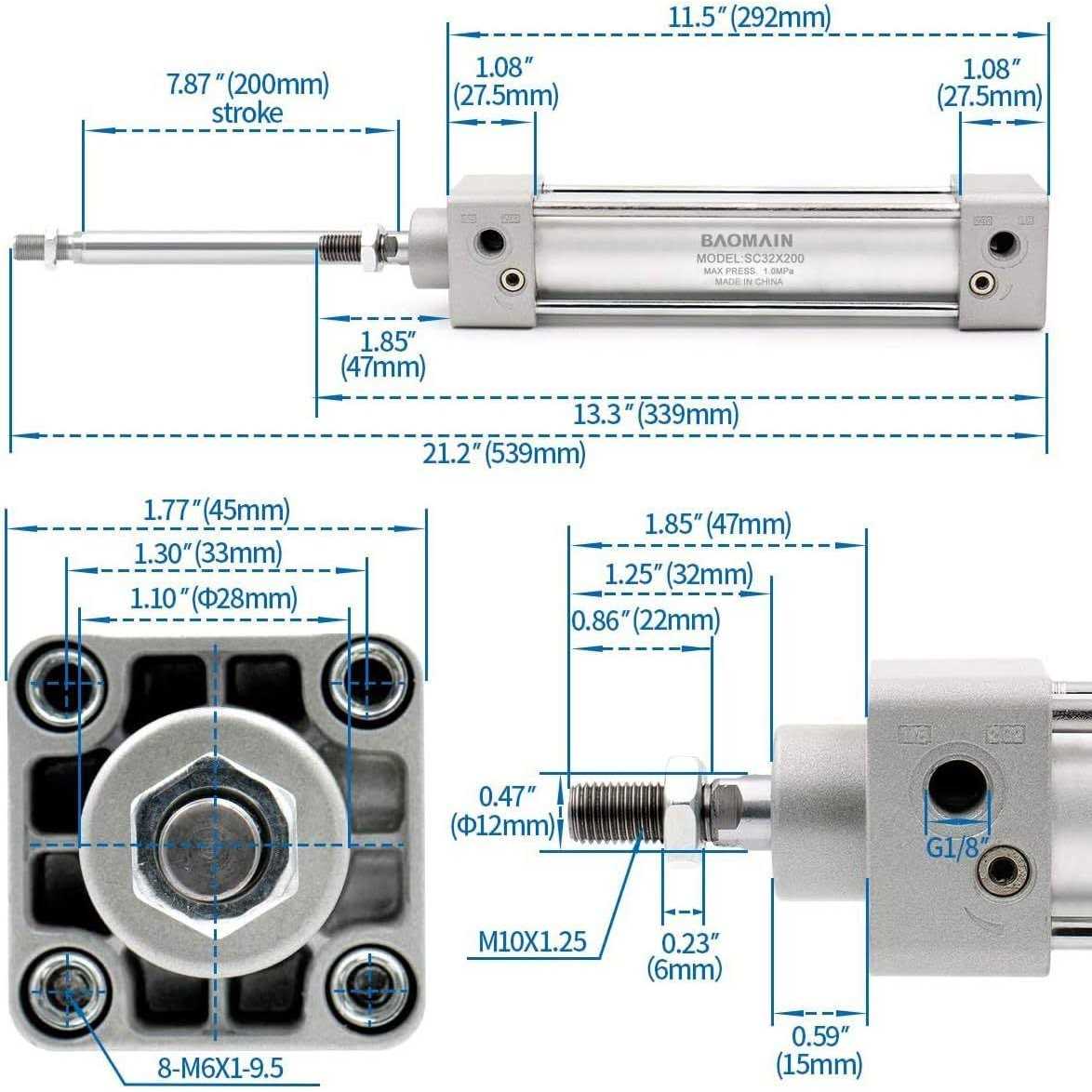 Baomain Pneumatic Air Cylinder SC 32-200 32mm Bore 200mm Stroke Screwed Piston Rod Dual Action