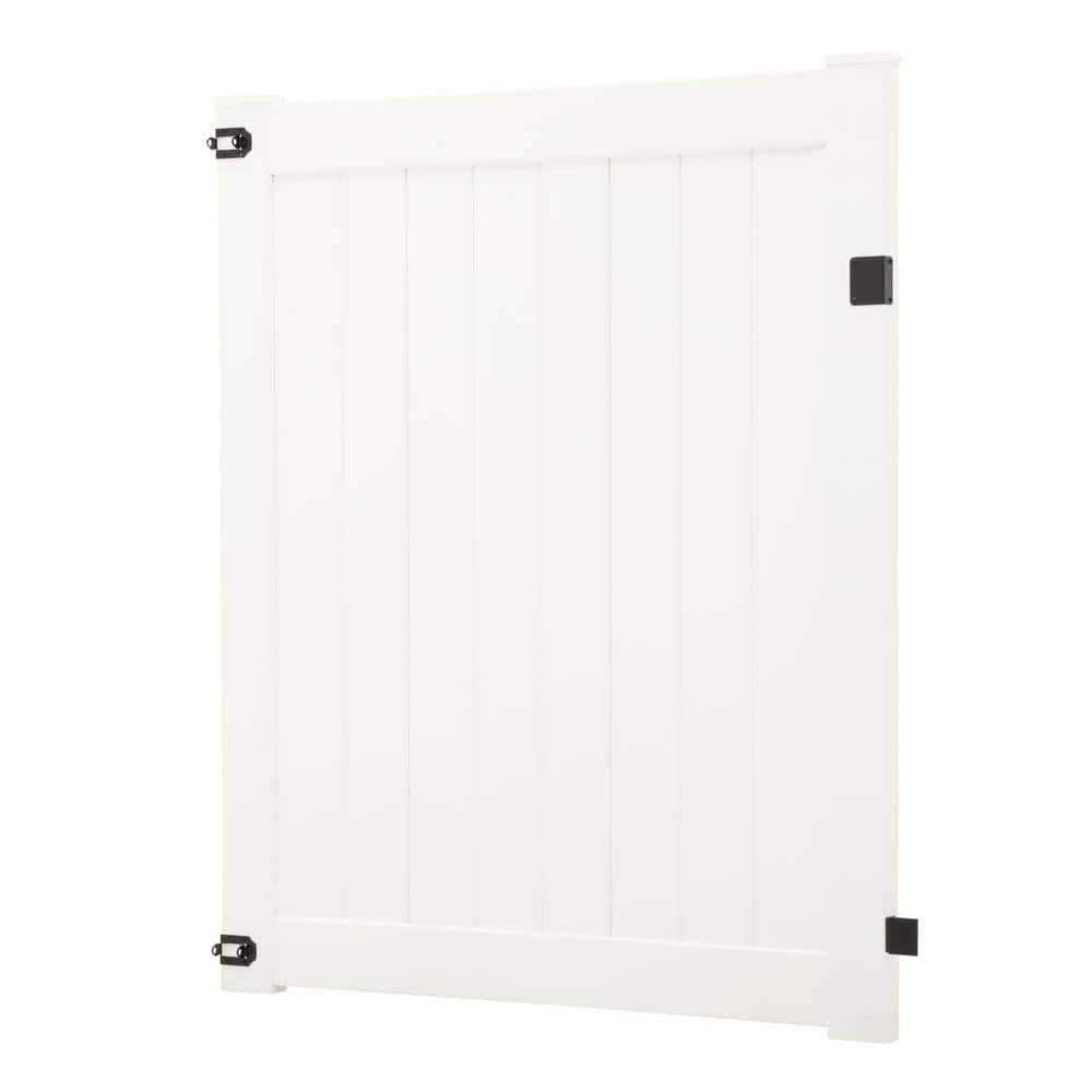 - 5-ft gate coordinates with Freedom 6×8 Bolton (model # 73014727) and Freedom 6×6 Hampton (model # 73014393) vinyl fence panels