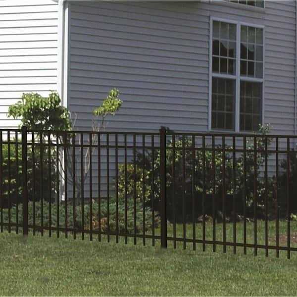 Our New Haven aluminum fence panel features a flat top, three rail design that will complement any home. The pre-assembled panels utilize Snap&Stay technology, a hidden fastener system that locks fence panels together from the inside out to provide a clean finish. Installation is quick and easy with coordinating pre-routed posts, no hardware required. powder coated aluminum resists rust and fade Coordinating posts sold separately: line post. model # 73002255, corner post. model # 73002256, end post. model # 73002257, gate post. model # 73002258, blank post. model # 73002392 Coordinating gates sold separately: arched top. model # 73009462 or straight top. model # 73009465 Picket size is 5/8 in.