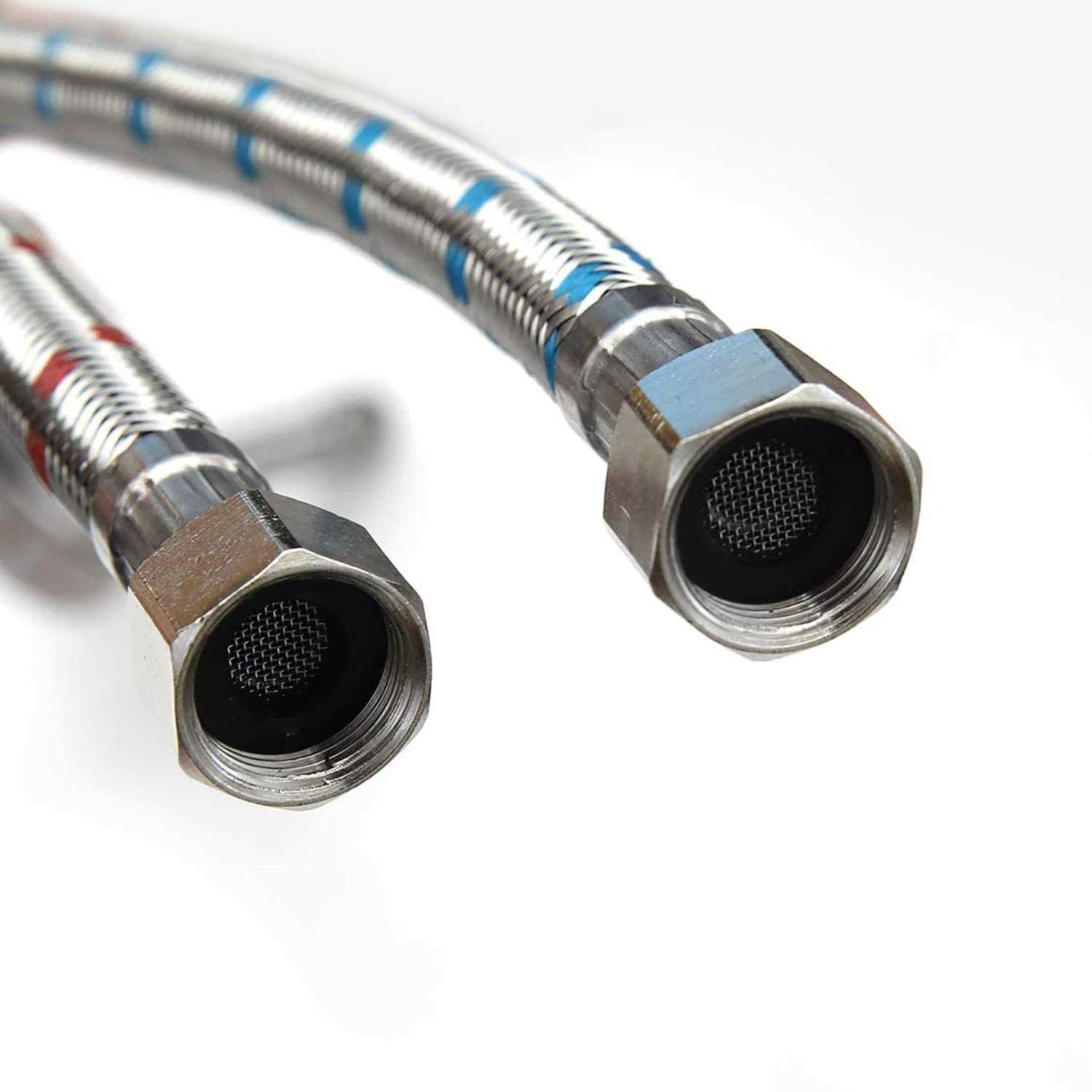 Bathfinesse Flexible Connector Braided Stainless Steel Bathroom Faucet Bathroom Kitchen Faucet Supply Lines 3/8-Inch Female Compression