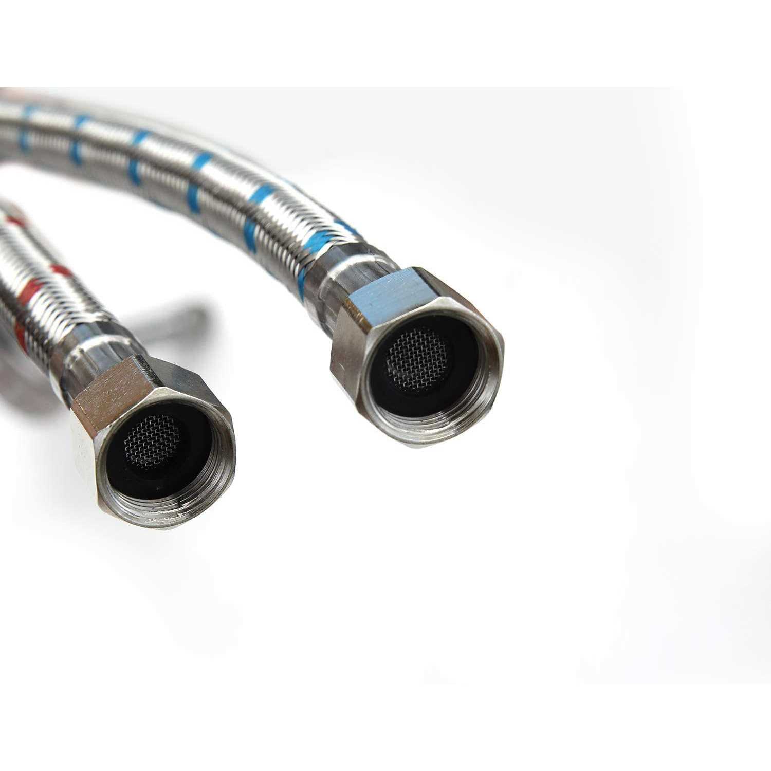2 pcs 40-Inch length, for hot & cold water M10 male vessel sink faucet connection. Fits most vessel sink faucets 304 Stainless steel braided exterior 3/8-Inch Female Compression Thread x M10 Male Connector Solid brass connector ensuring quality and longevity 40 inch [DETAILS] -Material : Type 304 Stainless Steel -Inner Tube Material : EPDM, high pressure resistance -Connnector : Brass, 3/8″ female by M10 male -Length : 24-Inch [Package Content] 2 x Supply Hose