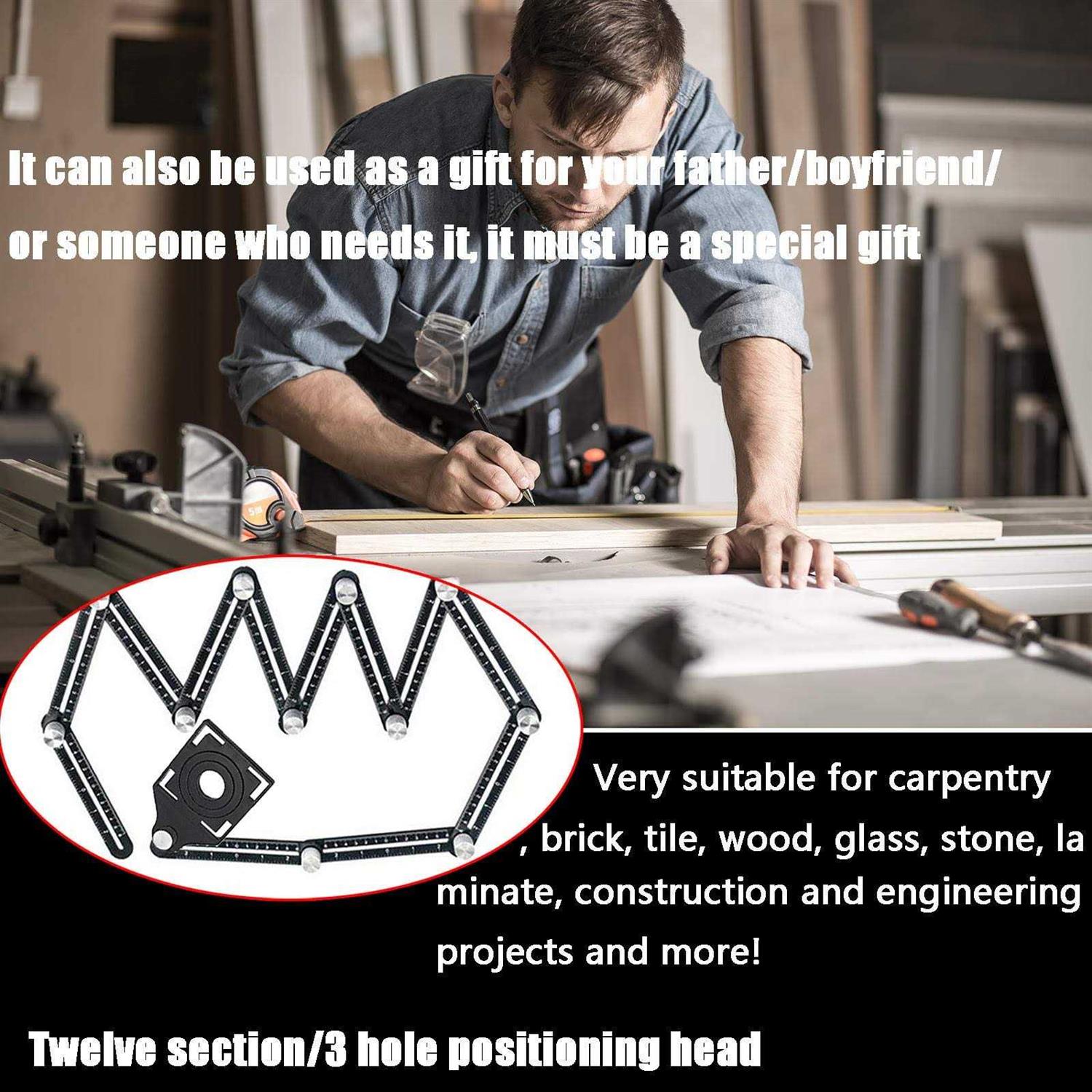BAWAQAF Multi-Angle Measuring Ruler,Multi Angle Tool,12-Sided Angle Measurement,Tile Holes Measure Ruler with 3-Holes Positioning Apertures,Upgrade
