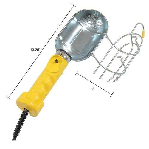 Get more done, regardless of light conditions, with a Bayco Pro Series Trouble Light. It’s ideal for both full-time professional mechanics and weekend hobbyists. This Bayco light can handle up to a 75W bulb without overheating, so it illuminates a wide area without casting large shadows. It has a metal bulb guard with an integrated hook that has a soft rubber tip, so workers can easily hang it almost anywhere and keep both their hands free. Moreover, this SL-425 metal guard light has a 25′ cord that swivels 90 degrees, so users can stand it upright on its base. This portable light also has a ergonomically designed flame-retardant handle that eases strain on fingers and hands, so it can be positioned precisely where illumination is needed most. Other automotive repair tools and accessories are all available separately. The Bayco Pro Series Trouble Light measures 13.25 inchL x 5.00 inchW x 5.50 inchH.