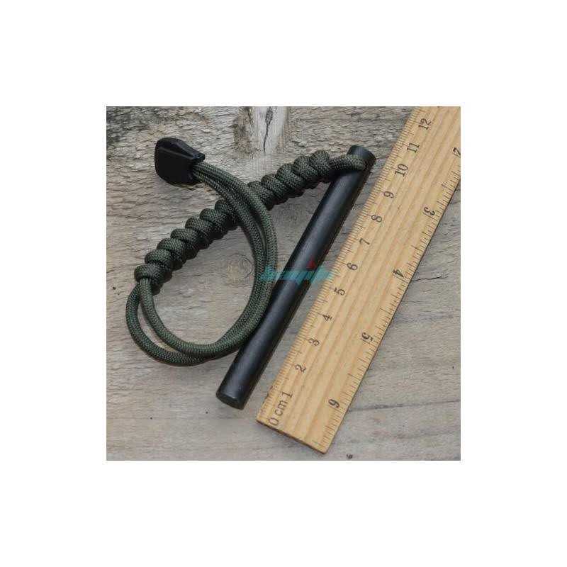 9ft Paracord included, gives you a good grip and never comes off. Comes with a striker attached to the paracord, always be prepared to start a fire Ferrocerium Rod Length:4 (10cm). Diameter: 3/8 (10mm). Large enough for a shower of sparks and small enough to carry Don’t use bad quality Knife as striker. Otherwise it will not produce enough sparks due to insufficient hardness of blade Made of high effective ferrocerium rod. Waterproof & Weatherproof, fits all weather, works in any weather condition Sparks shower at 5,500 F (3,000 C) to ignite a fire in any weather (even wet), at any altitude. Perfect emergency fire starter for Bushcraft, Hiking, Hunting, Fishing, EDC, Emergency, BBQ, Gas Camp Stoves, etc Ferrocerium Rod Length:4 (10cm) Diameter: 3/8 (10mm) Material: Ferrocerium Diameter of the hole: 4mm HOW TO USE: 1. Hold the ferro rod close to the tinder at about a 45-degree angle. Dead grass or weeds, fine, dry wood shavings, twine pulled apart, dryer lint or cotton balls… all make good tinder. 2. Place the scraper near the top of the rod (so it makes solid contact with the rod). 3. Pull the rod back (away from the tinder) with a slow and steady motion. Tip: Many people will hold the ferro rod next to the tinder and rub the scraper toward the tinder. By pulling the rod back (instead of rubbing the scraper forward) you’ll create a spark at the same place. But you’ll do it without risking bumping the scraper into your pile of tinder and scattering it all over the place. PLEASE NOTE: Because Ferro rods contain iron, they’re often coated to prevent oxidation. You’ll need to scrape away the coating to expose shiny metal before first use.