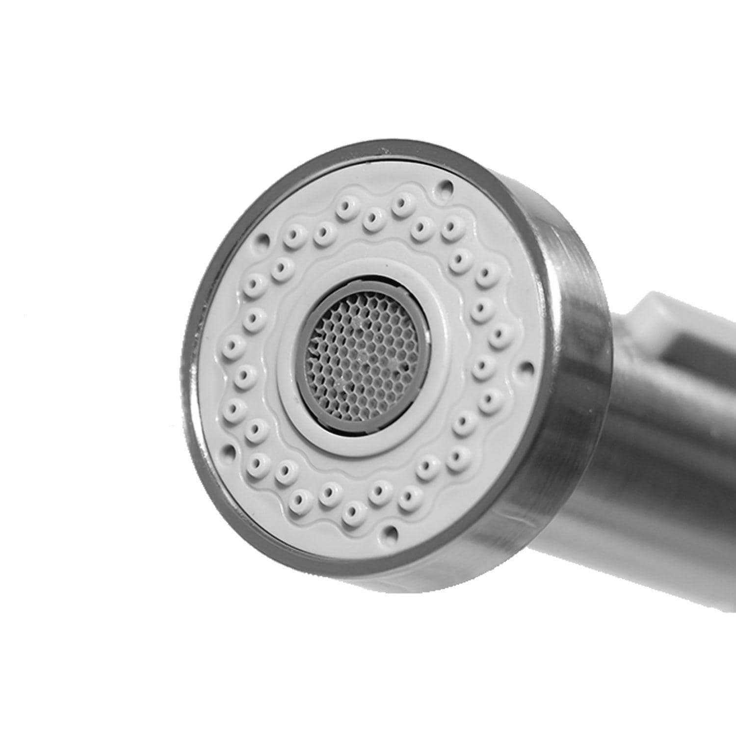 Outdoor Kitchen Sinks & Faucets. BBQGuys Signature offers its own line of sinks and faucets made with the same high quality materials as the leading brands at an unbeatable value. This Traditional single handle coil spring pre-rinse kitchen faucet features solid 304 stainless steel construction for high durability and corrosion resistance. The single handle design makes usage easy and accessible. The high coiled arch mimics commercial style sprayers, adding flexibility as well as providing a unique look. The neck of the faucet swivels 360 degrees, so you can reach any part of your sink with ease. The pre-rinse sprayer nozzle provides added utility. It can be pulled down for extended reach & aim and features a button for variable spraying options. The BBQ-K102 faucet is an affordable way to bring style and utility to your kitchen, whether it be indoors or out.