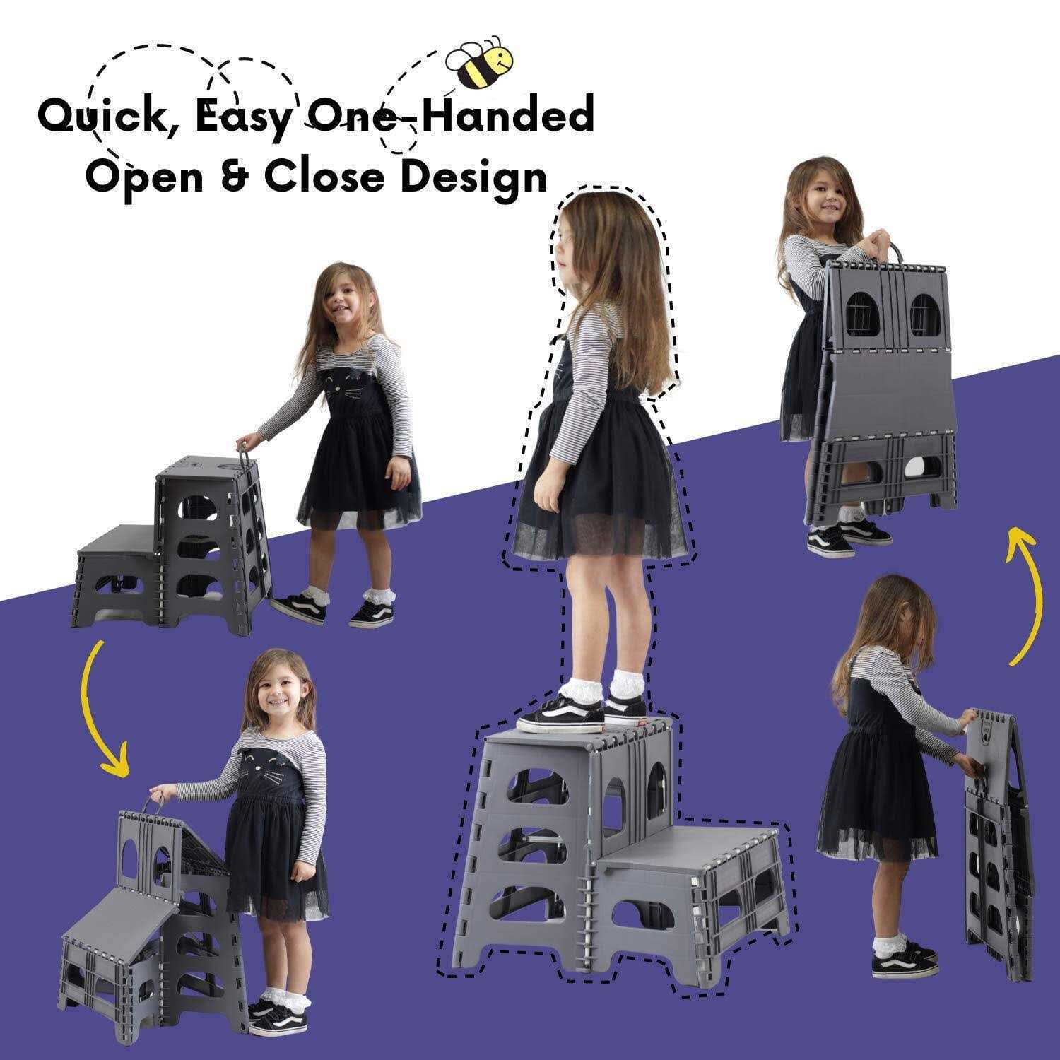 - One Hand Open & Close Our Step Stool is easy to fold & allows you to open or close with minimal effort using a single hand
