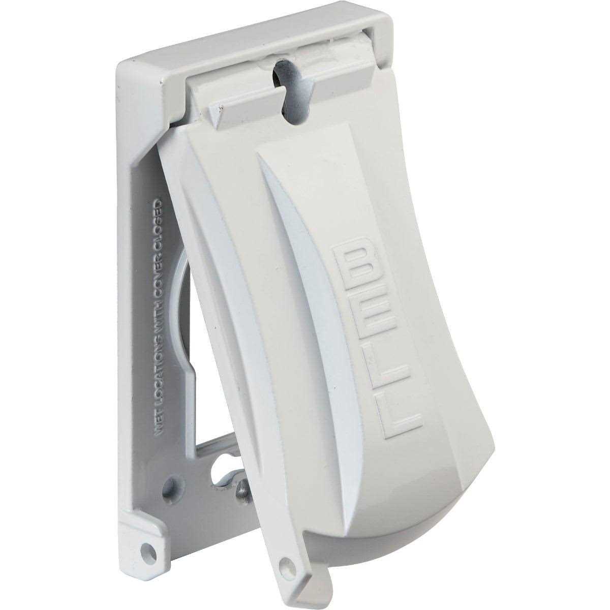 The Bell one-gang metal waterproof cover is made up of heavy duty, die-cast construction with a durable powder coat finish. It has technology with a patented universal fit adapter and a patented quick fit key hole mount installation that enables you to fit different size screws. This cover comes with a lockable tab and a spring hinge closure. The metal flat covers meet 2008 NEC standards for a horizontal or vertical mount. The Bell one-gang metal waterproof cover is made up of heavy duty, die-cast construction with a durable powder coat finish. It has technology with a patented universal fit adapter and a patented quick fit key hole mount installation that enables you to fit different size screws. This cover comes with a lockable tab and a spring hinge closure. The metal flat covers meet 2008 NEC standards for a horizontal or vertical mount.