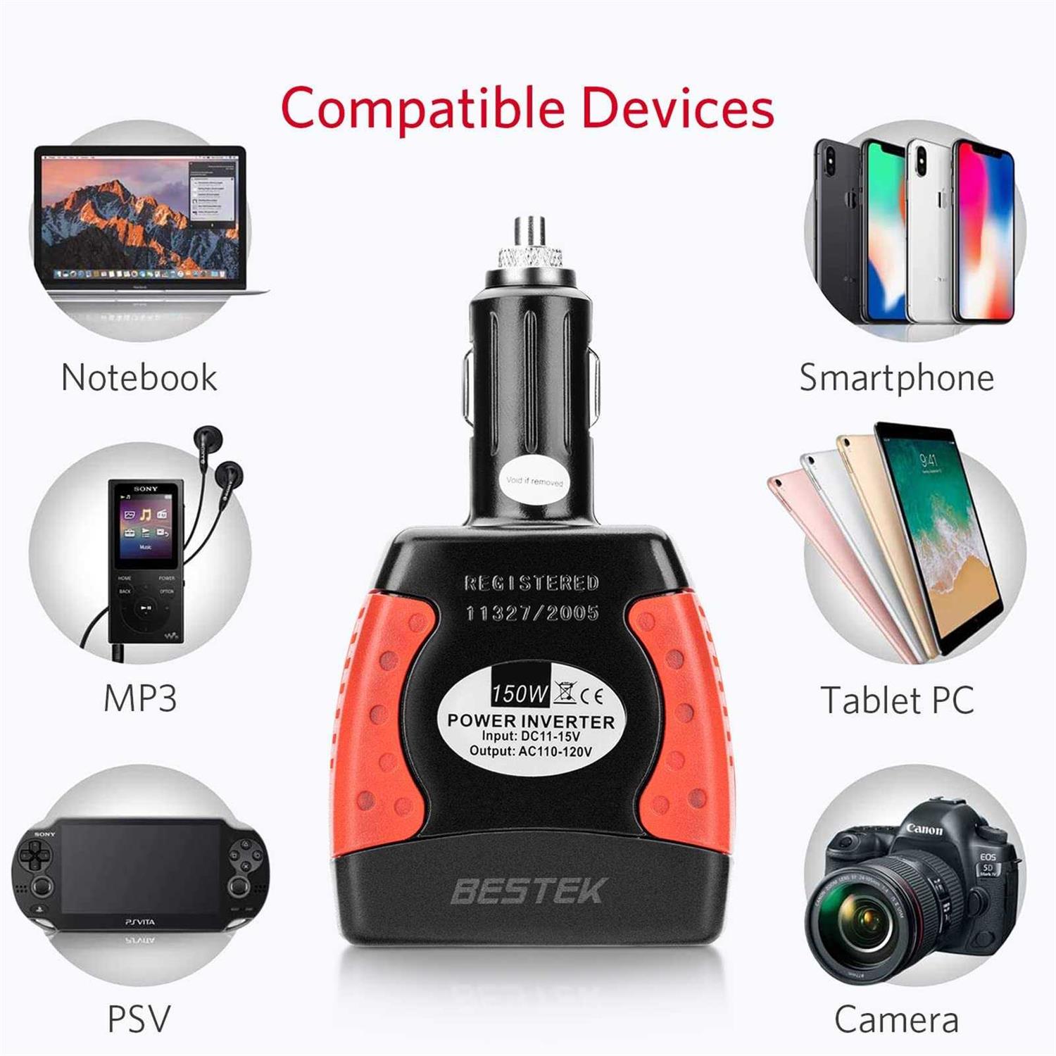 - BESTEK DC 12V to AC 120V Power Inverter include 2 USB ports and AC device, provides 300 watts of peak power to charge multiple devices on the go <