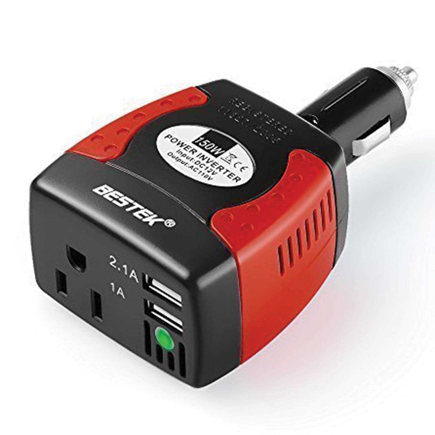Bestek 150W Portable Car Power Inverter DC 12V to 110V AC Outlet Converter with 3.1a Dual USB Car Adapter for Laptops, Tablets, Movie Projectors