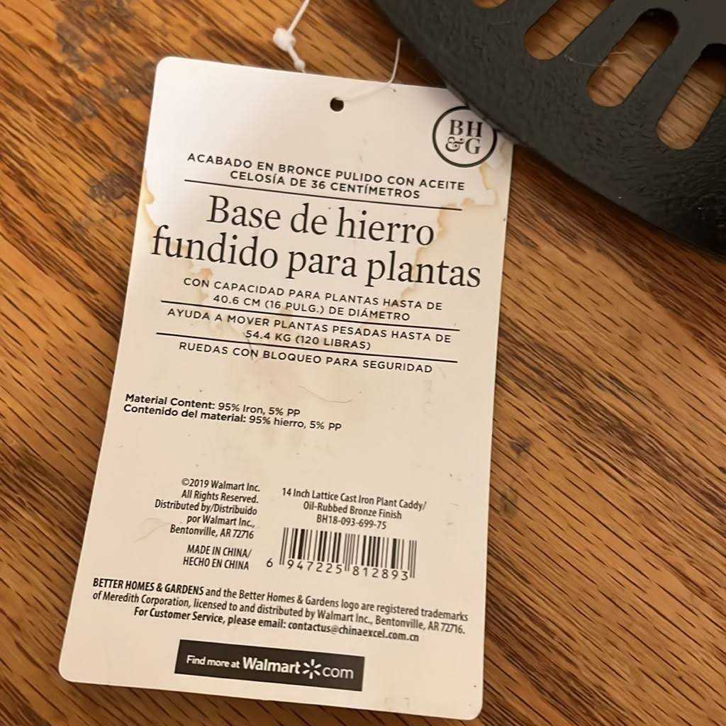 Better Homes & Gardens 14in Brown Cast Iron Plant Caddy