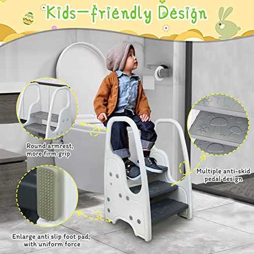BIGOU Toddler Step Stools for Bathroom Sink Adjustable Kids 3 Stool with Handles and Safety Non-Slip Pads Kitchen Helper Toilet Potty Training & C