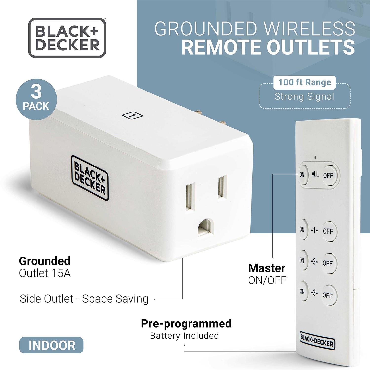 BLACK+DECKER Wireless Remote-Control Outlet Pack of 3 Outlets