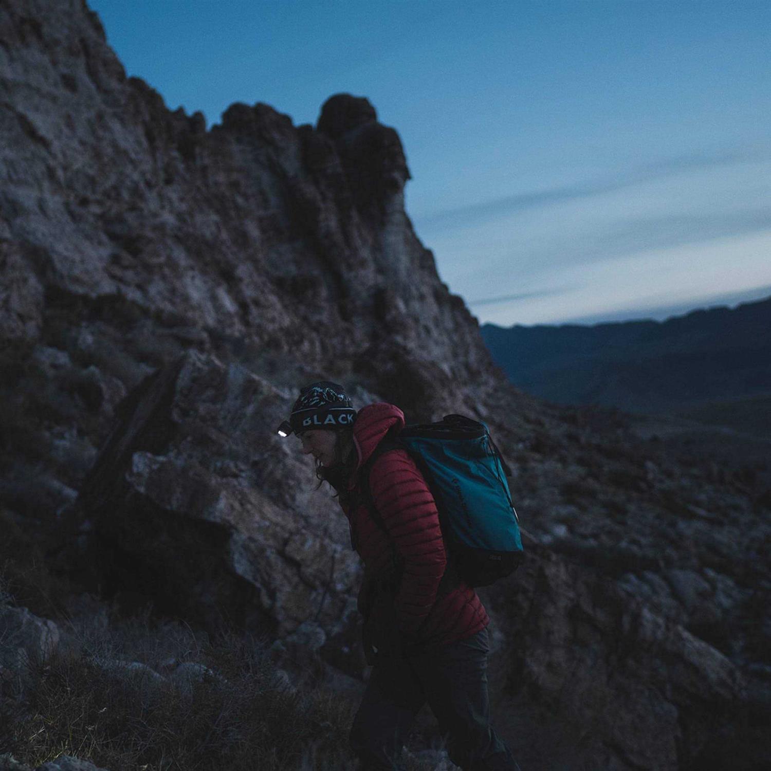 For multi-use camping, power outages in the ‘burbs and low-key adventures, the Black Diamond Cosmo 350 Headlamp delivers dependable light in a sleek, full-featured package. Plus, its dual-battery operation gives users a confident backup when power sources are scarce. Duel-fuel technology for maximum flexibility to utilize either the rechargeable Lithium Ion battery or AAA batteries. BD 1500 Lithium Ion Rechargeable sold separately; includes three AAAs. Multifaceted optical lens design emits up to 350 lumens on high setting. Settings include dimming, strobe, red night-vision and lock mode. Red night vision has dimming and strobe modes and is quickly activated with dual-button interface. Housing tilts so you can adjust the angle of the beam. Adjustable headband for a secure fit and padding behind the housing for additional comfort. Features a digital lock-out to ensure the headlamp doesn’t drain in your pack plus an integrated battery meter that shows the percentage of power remaining. The IPX8 waterproof housing protects against rain, splash, and immersion down to one meter (3.3 feet) for 30 minutes.