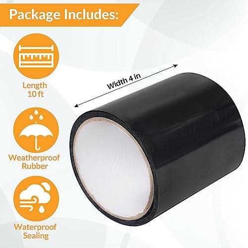 NOTE – Clean and dry the surface to get best results. The adhesive layer will lose function if directly contact water. QUICK FIX – Easy to use, seal seals out air, water, and moisture in minutes. INDOOR & OUTDOOR Works great on indoor and outdoors repairs and even under water. WEATHERPROOF – Extra thick adhesive layer and UV resistant backing. Repairs leaks in roofs, rubber, plastic or vinyl pool liners, water pipes and so much more. Color available in black and white.