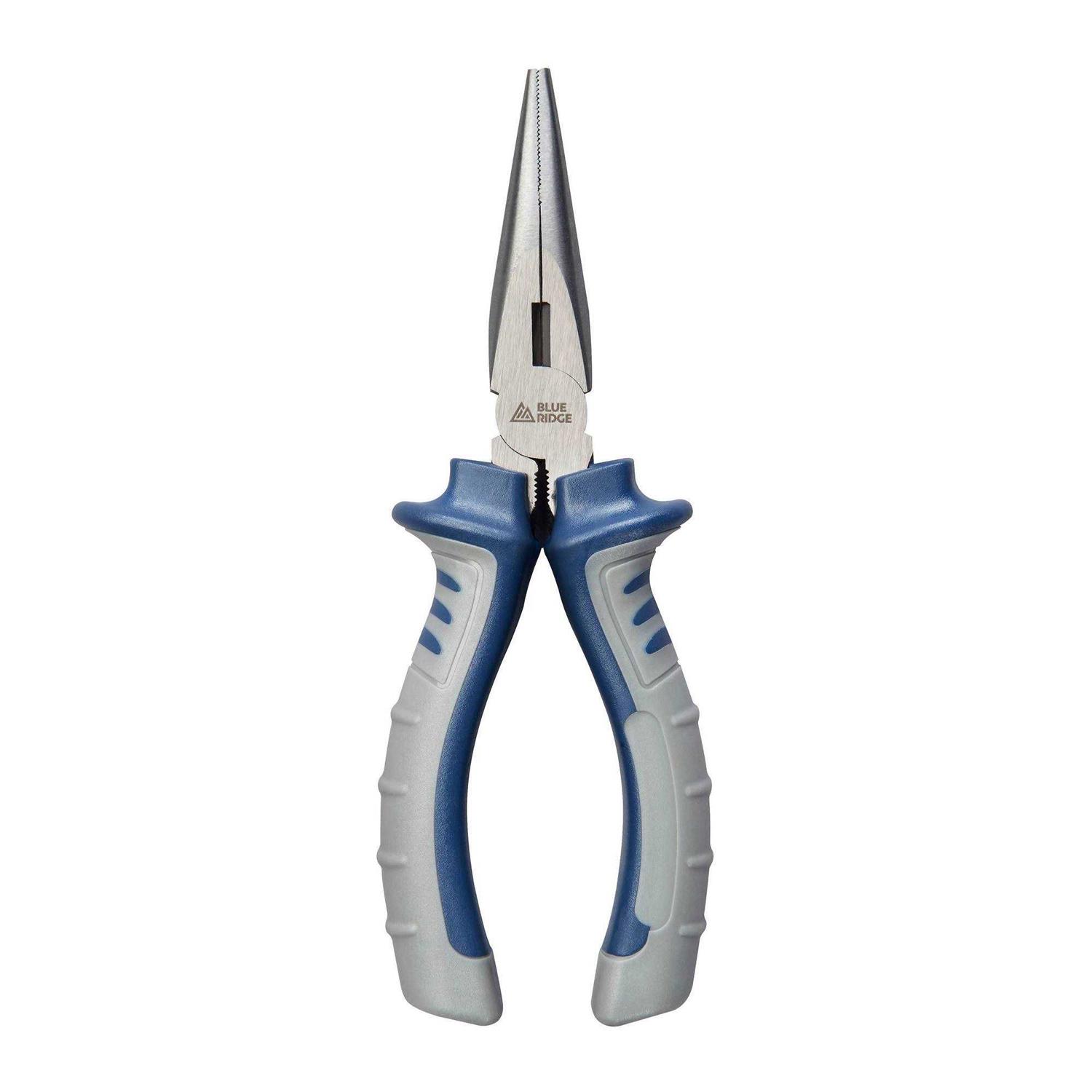 Otherwise known as “needle nose” pliers, the BLUE RIDGE 6” Long Nose Pliers are designed to grab small, hard-to-reach objects like nails, bolts or nuts with enough force to turn or remove them with ease. The multi-component molded soft grip handles are designed for maximum comfort while providing a no-slip grip, which dramatically increases torque and control.The long jaw has hardened teeth to grab objects and cutting blades near the handle to shape, strip or cut wire to length. And its tapered nose and curved head were created to fit into the tightest of spaces.