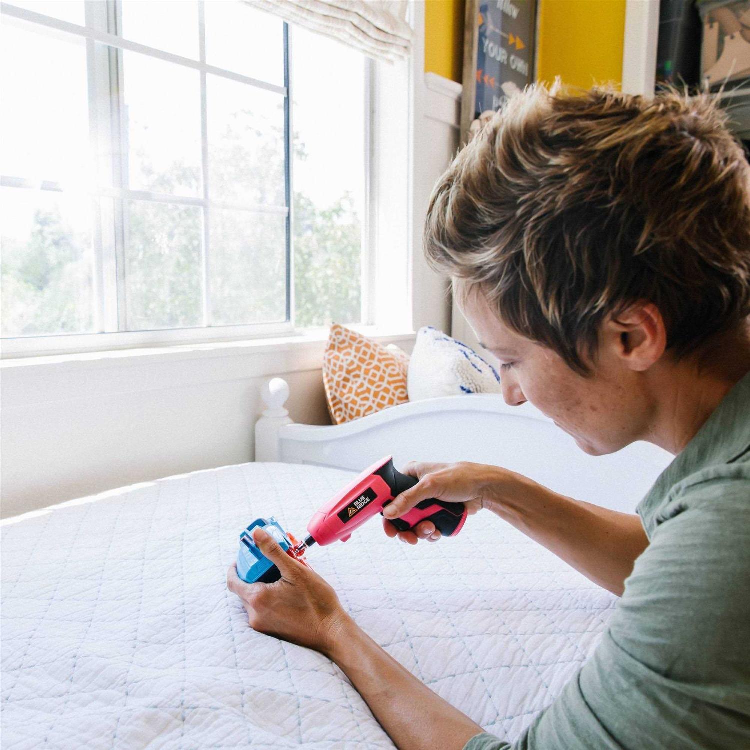 A toolbox or kitchen drawer isn’t complete without the BLUE RIDGE Pink Rechargeable Screwdriver. Compact in size and ultra-lightweight (under 1 pound), it’s the perfect assembly and quick-fix tool. Great for common household modifications with up to 4V of lithium power. Tackle curtain hanging, furniture assembly or simple fixes like changing the batteries in a children’s toy with a selection of six, 1” bits. Extend the reach with the 2” magnetic bit holder for tight areas. An onboard LED light lets you easily see your workspace and soft-grip ergonomic handle makes this tool hassle-free. Micro USB charge port with wall charger included to power-up when the on-tool indicator shows low charge.