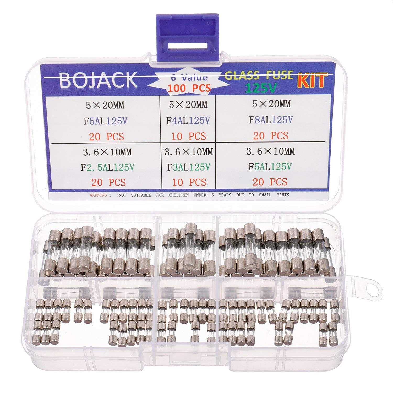 Bojack 6 Values 100 Pcs Fast-blow Glass Fuses Assortment Kit 3.6x10mm 0.14×0.39inch 125v 2.5 3 5a 5x20mm 0.2×0.78inch 125v 4 5 8a Amp Packag In A Clear Plastic Box Bojack Bojack 6 Values 100 Pcs Fast-blow Glass Fuses Assortment Kit 3.6x10mm 0.14×0.39inch 125v 2.5 3 5a 5x20mm 0.2×0.78inch 125v 4 5 8a Amp Packag In A Clear Plastic Box