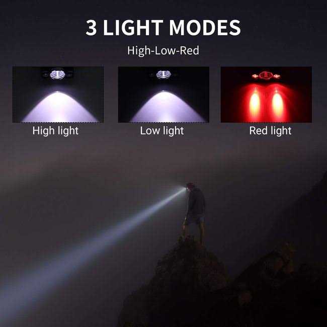 - ★3 Lighting Mode BORUIT Headlamp➤➤High White Light-Low White Light-Red Light ,which can meet your needs in different circumstance .