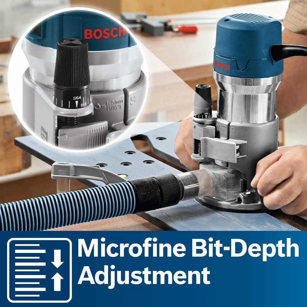 Features: VERSATILE: kit can be used for a broad range of applications, including precise bit plunging, edge forming, slot cutting, laminate trimming and dovetail cutting, making it one of the most widely used routers for wood working DURABILITY: aluminum construction makes this one of our most durable wood routers yet with wooden handles on a fixed base and a soft grip handle on a plunge base EASE OF USE: rounded hardwood handles maximize user control; microfine bit-depth adjustment. CONVENIENT: with the built-in constant response circuitry, our 1617EVSPK wood router will maintain a constant speed throughout the cut, so you get cleaner, more accurate results 12 AMP MOTOR AND ADJUSTABLE SPEED DIAL: user can set the optimal speed (8,000-25,000 RPM) for more or less power. INCLUDES: plunge base, fixed base, 1/4 inch and 1/2-inch collet chucks, shaft wrench, collet nut wrench, chip shields and carrying case Details: The Bosch 1617EVSPK 2.25 HP Combination Plunge- and Fixed-Base Router has the power to get results, with a 12 Amp motor and adjustable speed settings. The variable-speed dial allows the operator to set the optimal speed. Constant Response Circuitry, the router will maintain a constant speed throughout the cut, resulting in clean, accurate product. The plunge base features smooth plunge action. Users can glide along the intended cutline using dovetail fixtures, templates, jigs and other guidance devices. The Bosch Precision Centering Design allows the bit to be centered with the sub-base or optional template guides.