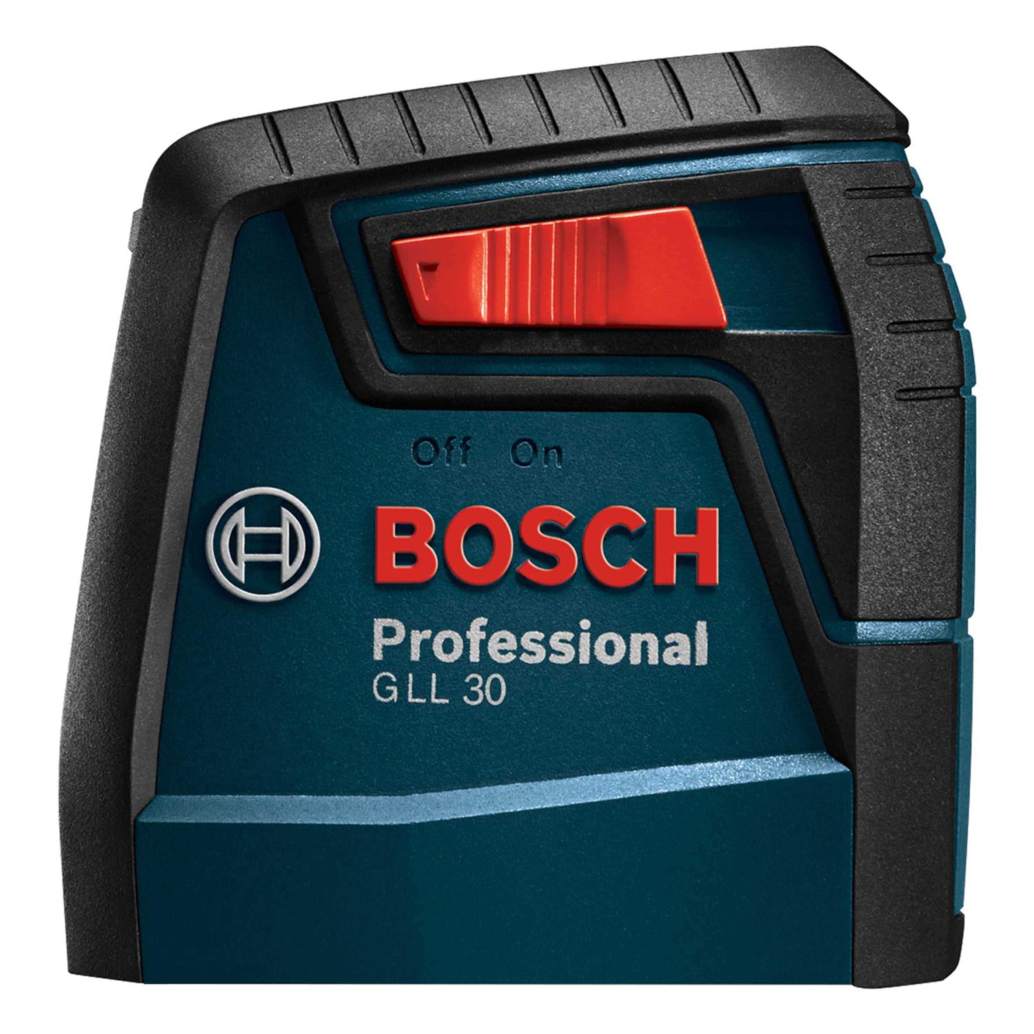 Cross-line mode 窶 Smart Pendulum System 窶 Manual mode 窶 Secure transport 窶 Ergonomic, compact and lightweight 窶 Product details The Bosch GLL 30 self-leveling cross-line laser projects two lines, making a cross-line projection, for a wide array of level and align uses. This versatility makes it more valuable than a typical line laser. With top-notch accuracy and one-switch operation, the user’s leveling and alignment tasks are done quickly and correctly. The laser lines are visible up to 30 ft. The smart pendulum system self-levels and indicates out-of-level condition to help ensure an accurate layout and it locks the lines at any angle. The pendulum system locks when switched off, to assure secure tool transport. The included MM 2 Flexible Mounting Device provides microfine height adjustment and it allows the laser to be clamped on virtually any surface from 1/2 to 2-1/4 in thick, for level lines at any height. Cross-line mode, projects two very bright lines that are ideally level. Cross-line mode, projects two very bright lines that are ideally level. MM 2 Flexible Mounting Device, clamps to multiple surfaces and provides microfine height adjustment. Smart pendulum system allows tool to self-level and indicates out-of-level condition. Secure transport, pendulum locks when switched off. Ergonomic, compact and lightweight, easy-to-use and store. Features 1/4-20 tripod thread, for use with MM 2 mount, BM 3 magnetic mounting bracket or tripod. Versatile clamp, stable grip on thin and thick surfaces from 1/2 to 2-1/4 in thick. Manual mode, locks line for use at any angle.