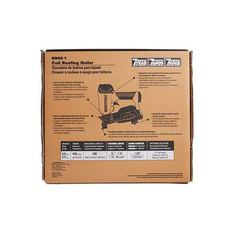 No nailer does everything, but the Bostitch RN46-1 coil roofing nailer comes close. Stop at any construction site and watch as the roofers fly through their job with ease. Chances are, they are using the #1 roofing nailer in the business the RN46-1. This little tank is built to last even under extreme job conditions. Bostitch makes sure by dragging it 75 miles across asphalt shingles in its testing labs. Constructed of durable, lightweight magnesium, the RN46-1 weighs only 4.8 pounds and delivers 410 inch-pounds of driving power.