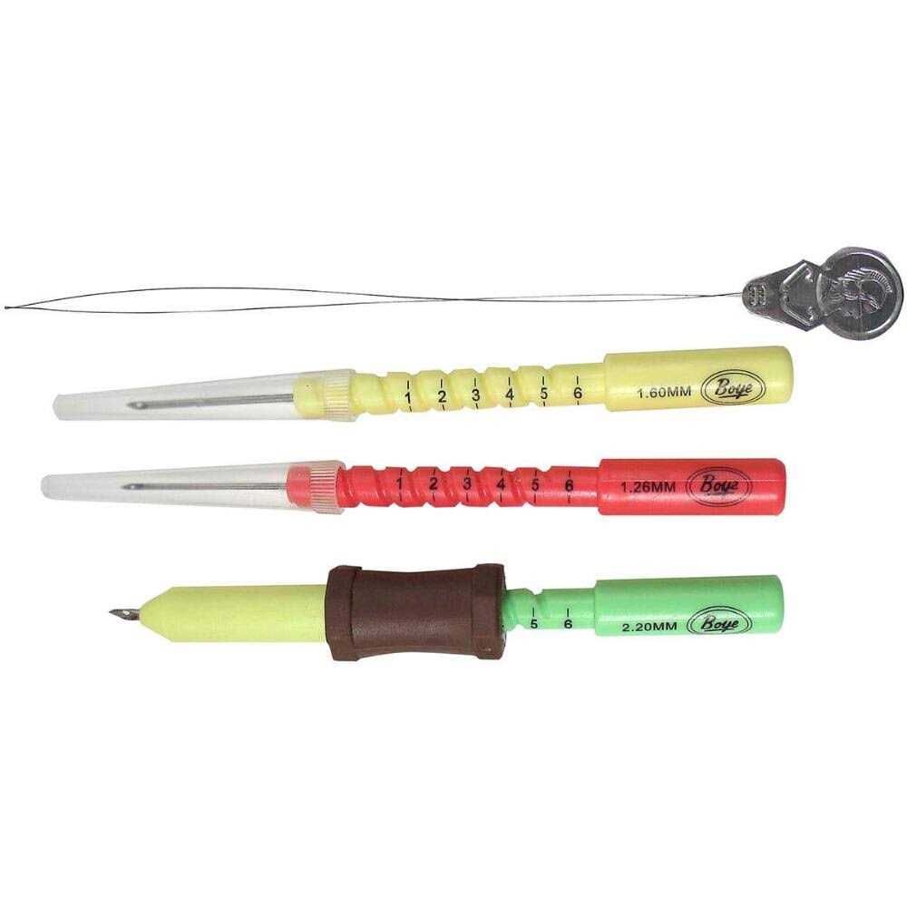 Includes (3) adjustable punch needs, (1) needle grip, and (1) threader. Needle measurements are 1.2mm, 1.6mm, and 2.2mm This embroidery set includes 3 adjustable punch needles of varying widths. Perfect for beginners and experienced crafters alike! A great addition to your travel embroidery set for on-the-go punching projects.