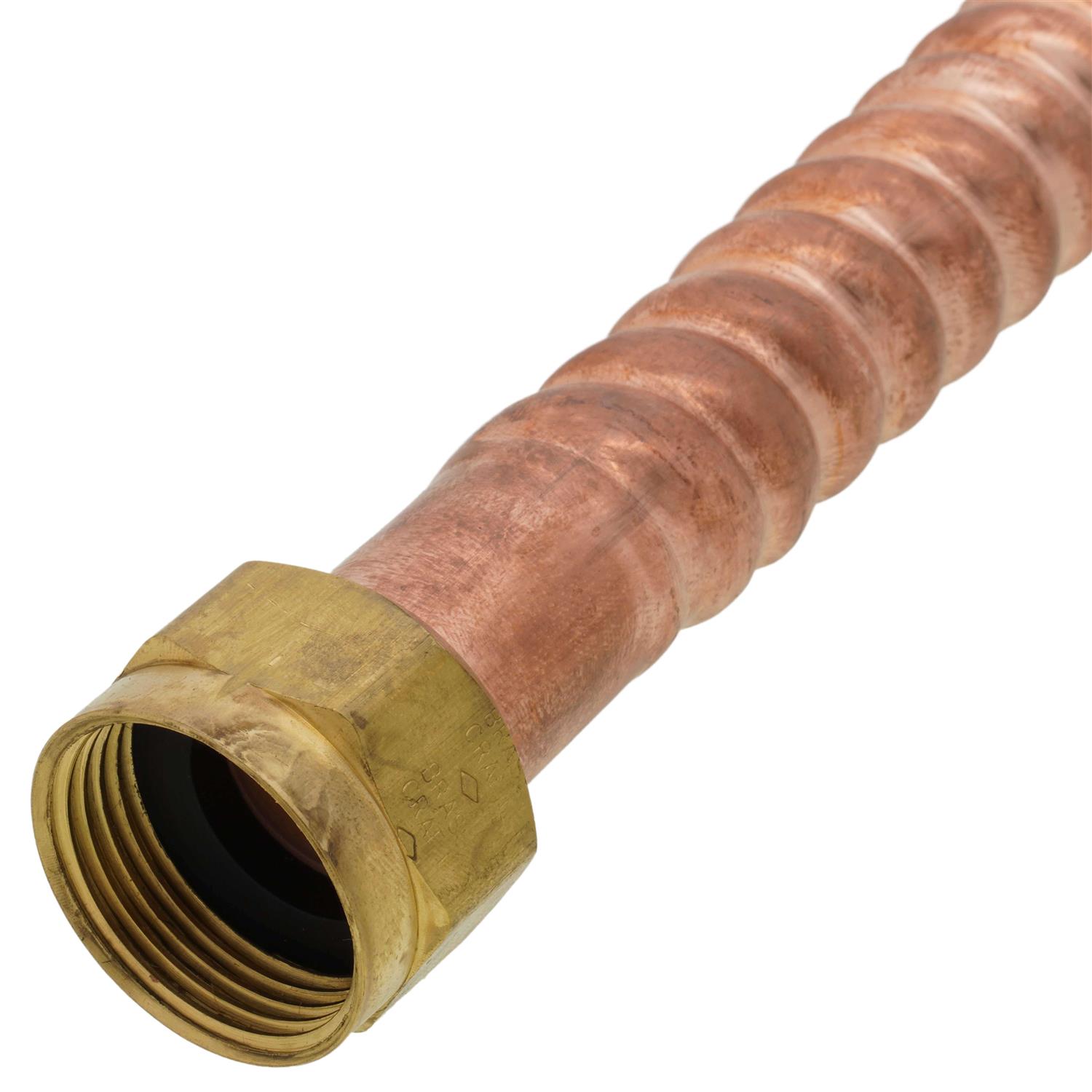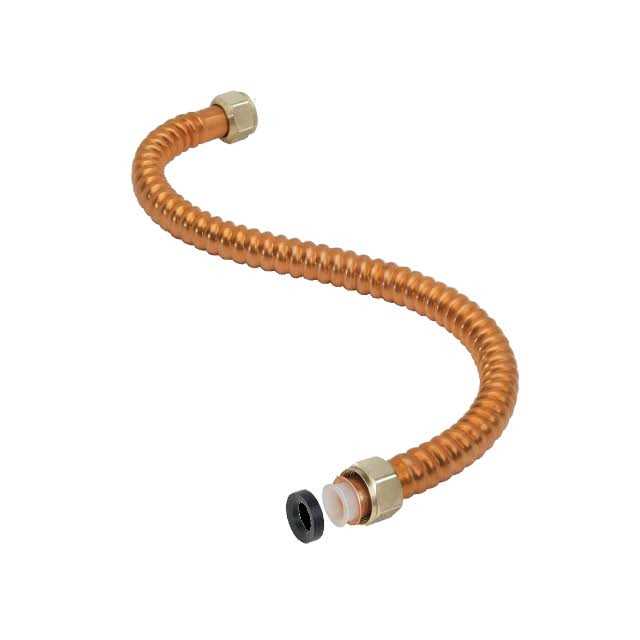 Corrosion is no match for BrassCrafts COPPER-FLEX water heater connectors. Constructed of seamless copper tubing, Copperflex water heater connectors are the professional’s choice for water heater installations. Featuring an integrated dielectric sleeve, the sleeve isolates dissimilar metals within the waterway, where galvanic and electrolytic corrosion have their greatest potential. This separation provides complete protection against galvanic corrosion that can deteriorate the connector and cause leaks. In addition, the integrated dielectric sleeve eliminates the need to install an additional dielectric union, reducing time and installation costs.