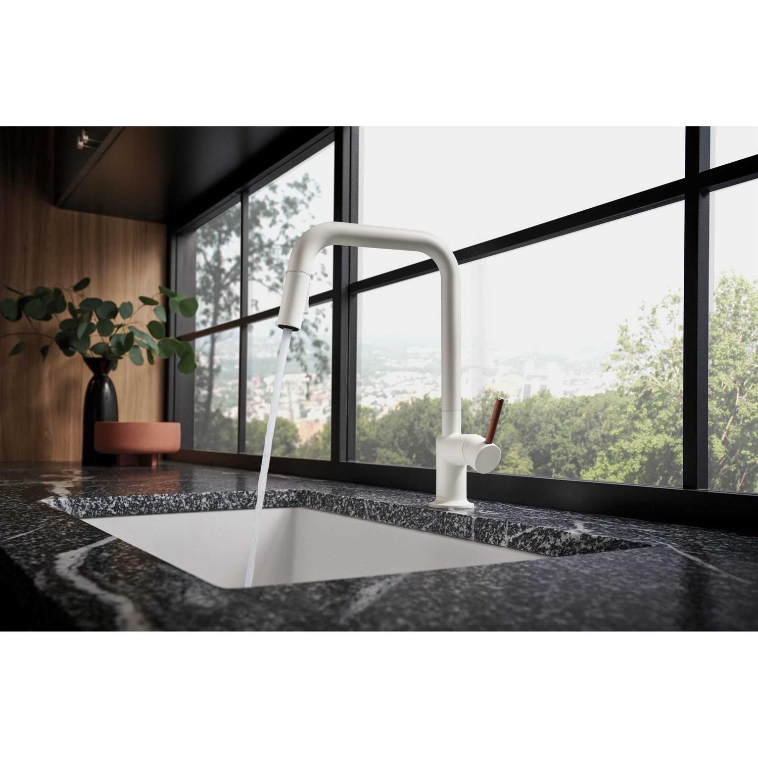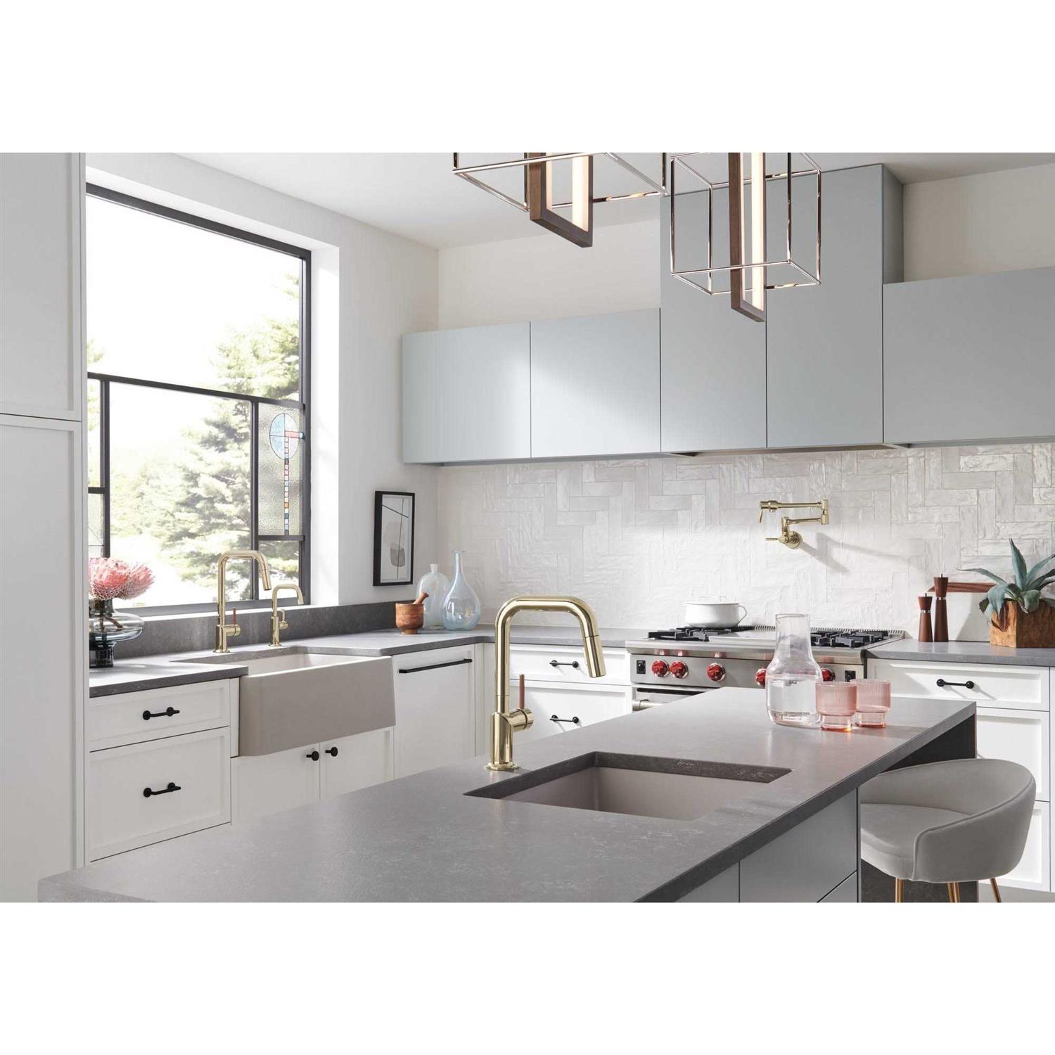 Amidst a world of noise and flash, the streamlined silhouette of the Jason Wu for Brizo kitchen collection in a striking Matte White finish stands out with a vibrance all its own.