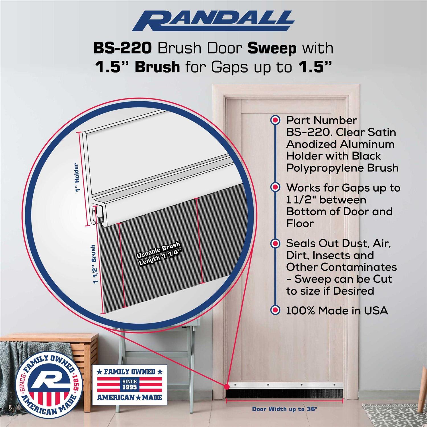 3 ft Brush Sweep Door Sweep with 1 1/2 inch Black Brush -100% Made in USA (Clear Anodized), Size: Small