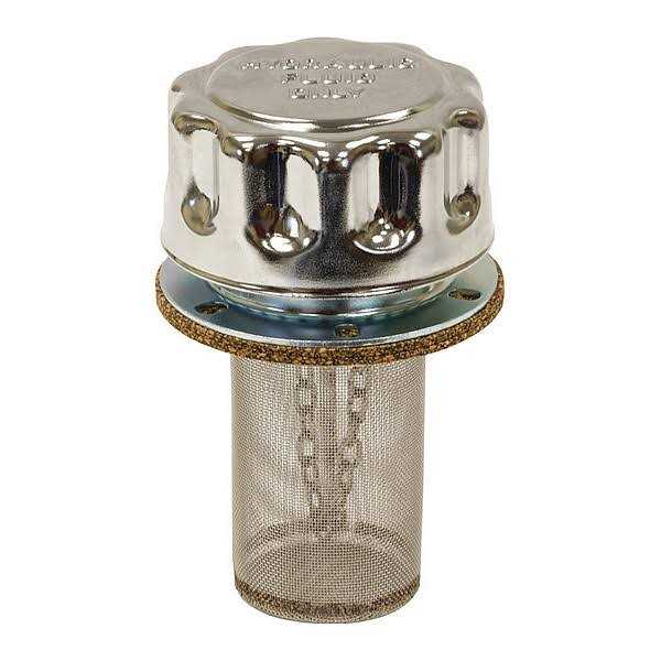The Chrome Filler-Strainer Breather Cap Assembly from Buyers Products keeps contaminants out as you fill your oil reservoir, while acting as a fresh air ventilator to allow the tank to “breathe.” It prevents a vacuum from building up in the tank. It contains a quarter-turn filler/breather cap that will filter out contaminants as small as 40 microns. You can order it with a locking tab and a 30 mesh/500 micron strainer basket. All mounting hardware is included. “Hydraulic Fluid Only” is stamped on the cap to prevent damage caused by using the wrong fluid. Keeps contaminants out as you fill your reservoir and allows the tank to “breathe.” Truck and Trailer Hydraulic Systems Keeps contaminants out while you fill the reservoir tank. Allows your reservoir to “breathe” and prevents a vacuum from building up. Cap warning helps prevent inadvertent damage from using the wrong fluid.