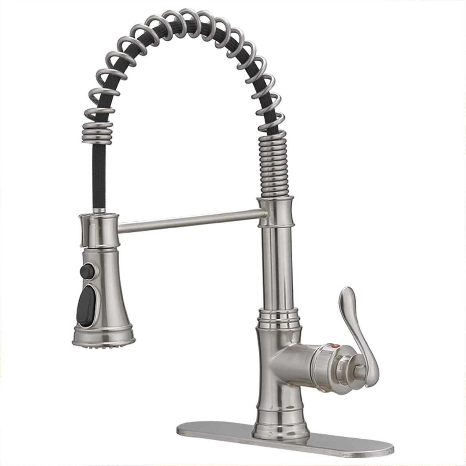 Multifunctional Outlet Water Effect:3 Spray Modes(STREAM/SPRAY/SWEEP)meet varies of wash requirement,stream for filling water, spray for strong rinsing, sweep for cleaning dishes by powerful blade water. Easy Match Design:Brushed Nickel finish protect your faucet from fingerprints or water spots.The kitchen faucet design make your kitchen room simple and fresh,brings timeless style to your kitchen,easy to match most sink. Easy to Install:Designed to fit 1 or 3-hole,10 inch escutcheon included,Pull down hose and water line hoses pre-install in kitchen faucet to save much time under the sink.Clean faucet by cloth is enough in daily use Easy to Use:Single handle design integrates to control water temperature and flow volume easily.High arch 360 degree swivel nozzle supply full range of washing for your kitchen sink. Premium Quality:reliable ceramic cartridge can survive 500,000 times open & close test sensure a stable and long-lasting service life,lead-free material to ensure family health.