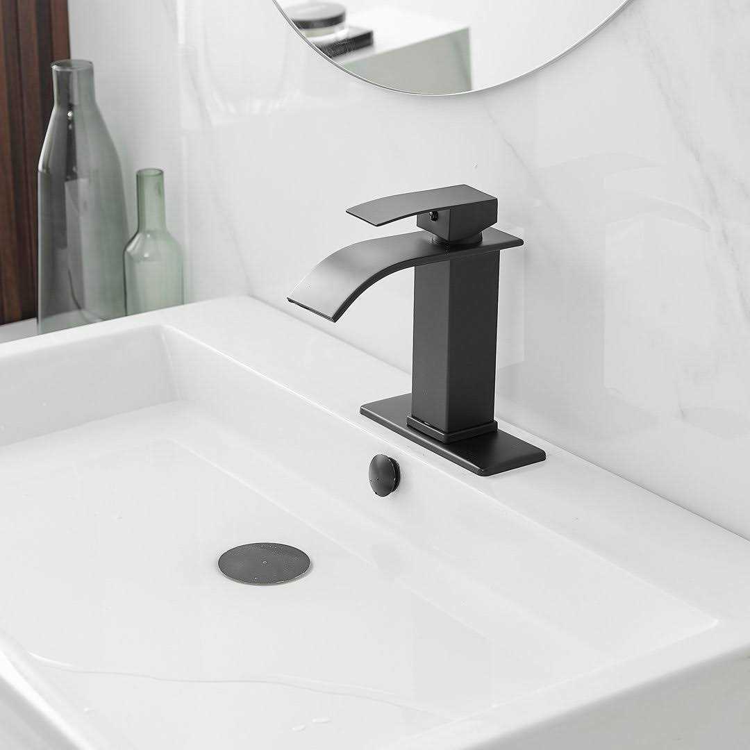 BWE A-96021 Bathroom Sink Faucet Matte Black Single Hole 1-Handle Bathroom Sink Faucet with Deck Plate Stainless Steel | A-96021B-SS