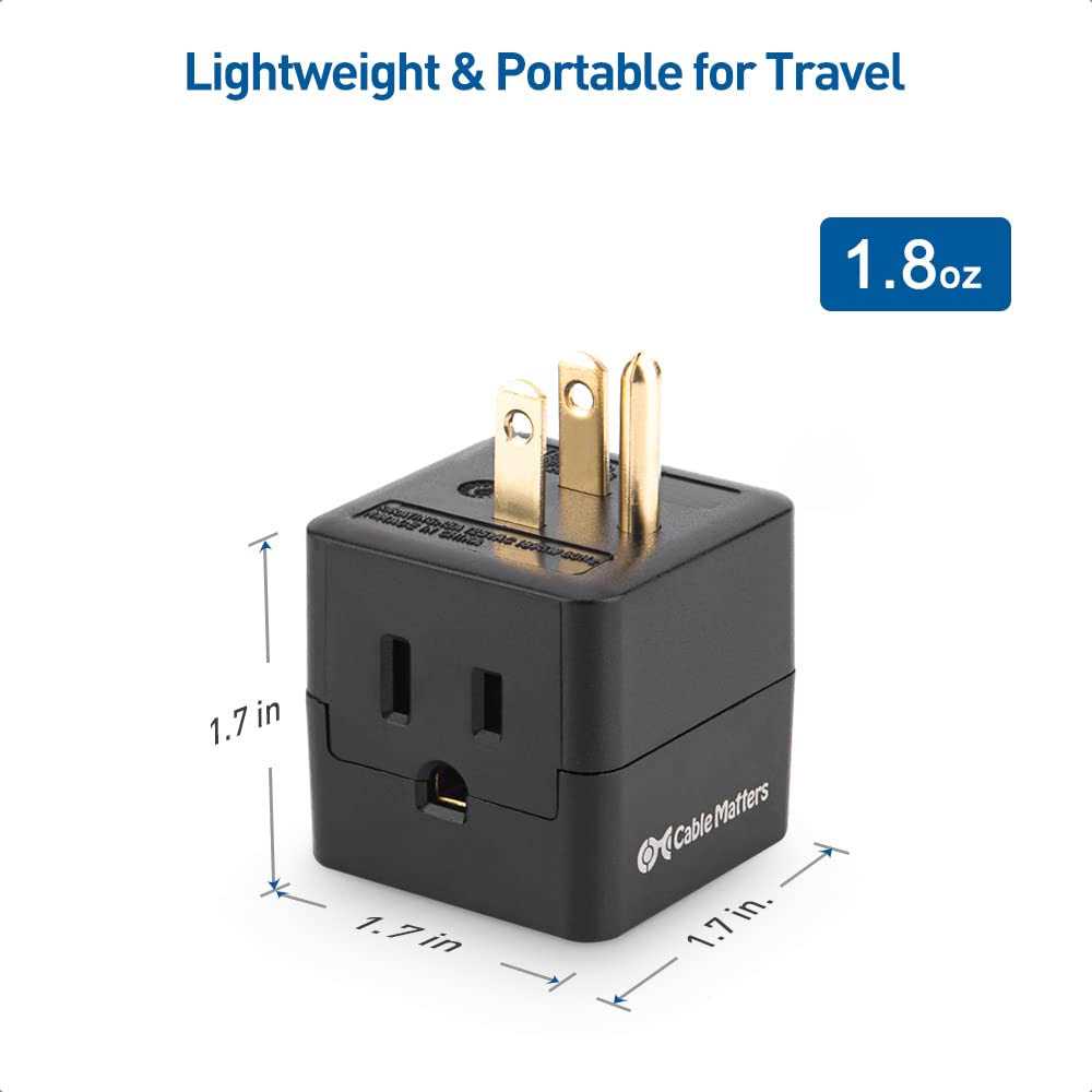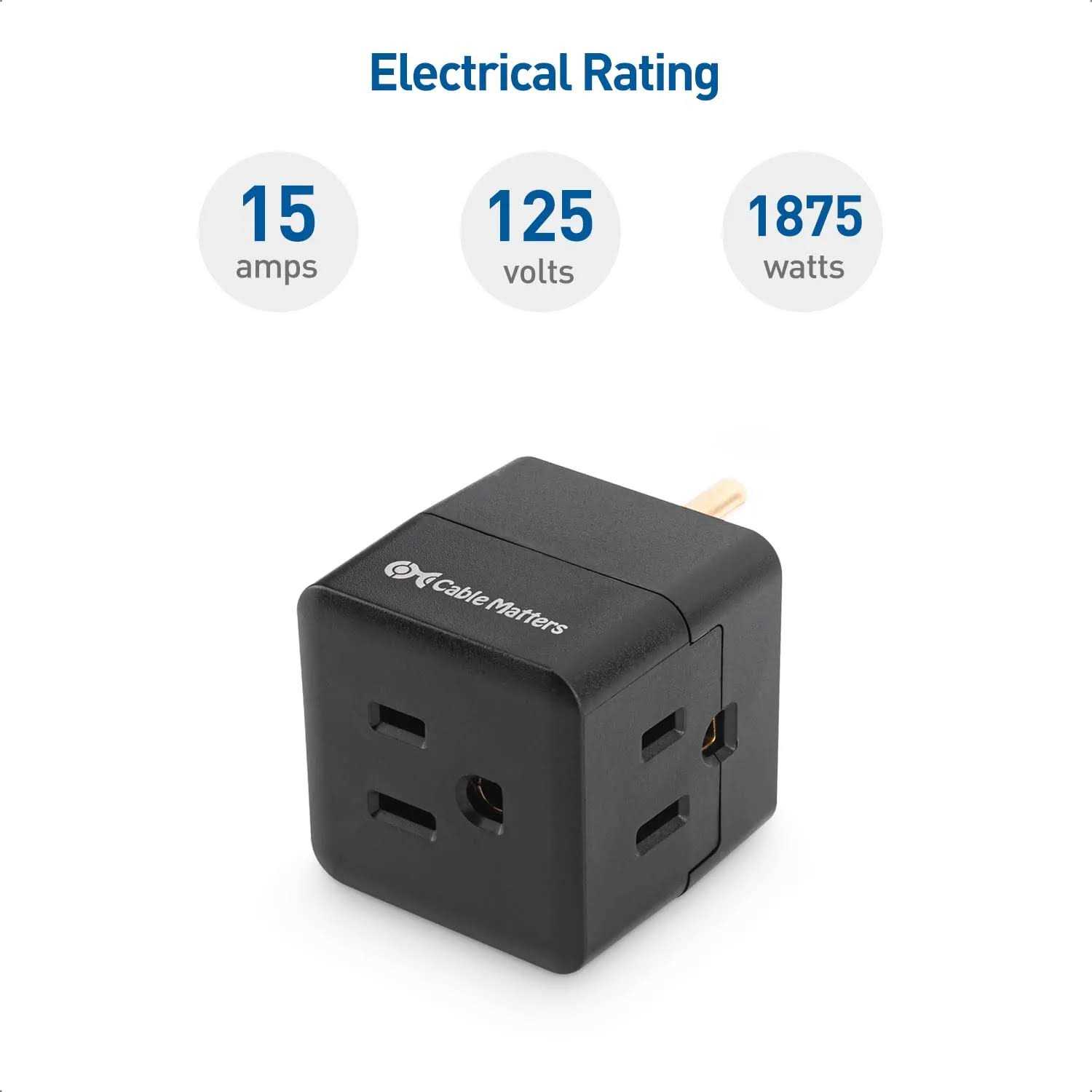 The Cable Matters 3-Outlet Grounded Cube Wall Tap expands the capacity of an existing outlet, especially in tight spaces. 90-degree rotated outlets on the wall tap accommodate three cables without blocking. This AC adapter provides a unique solution for connecting an upright nightlight into AC receptacles that are mounted horizontally.