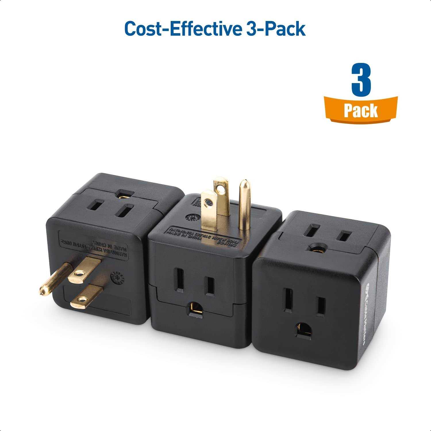 [ul Listed] Cable Matters 3-Pack 3 Outlet Wall Adapter, 3 Outlet Power Cube Tap, Outlet Splitter / 3 Way Plug Adapter in Black