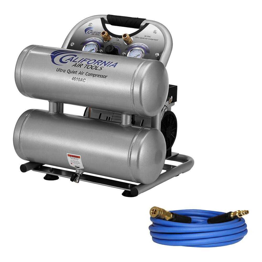 California Air Tools 4610ACH | 4.6 Gallon 1 HP Ultra Quiet and Oil-Free Aluminum Twin Tank Air Compressor Hose Kit