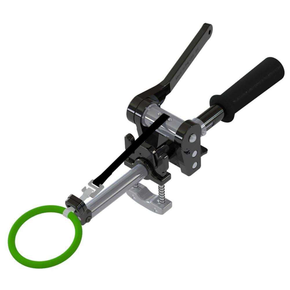 Product Description Achieves tight band every time with high-tension ligation. Easy-to-read 360° tension indicator ensures correct tightness essential to minimize discomfort and reduce physical complications. Drug-free, light, sleek and easy to use. Band stretches over scrotum, then is tightened and locked firmly into position. No crimping May also be used for removing horns and treating prolapses. Durable pull strap; large loop opening for easy placement. No “wrong” way to load in loop. Tetanus Toxoid must be used (sold separately). Includes 5 easy-to-see bright green loops and carrying case.