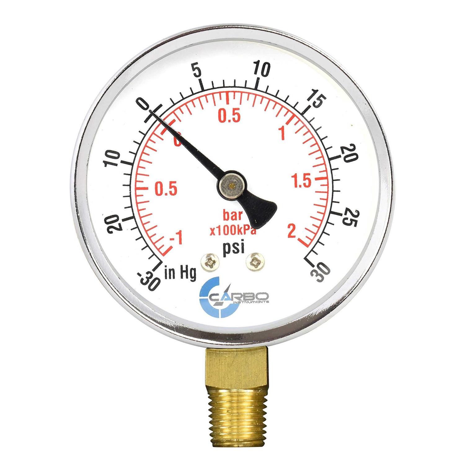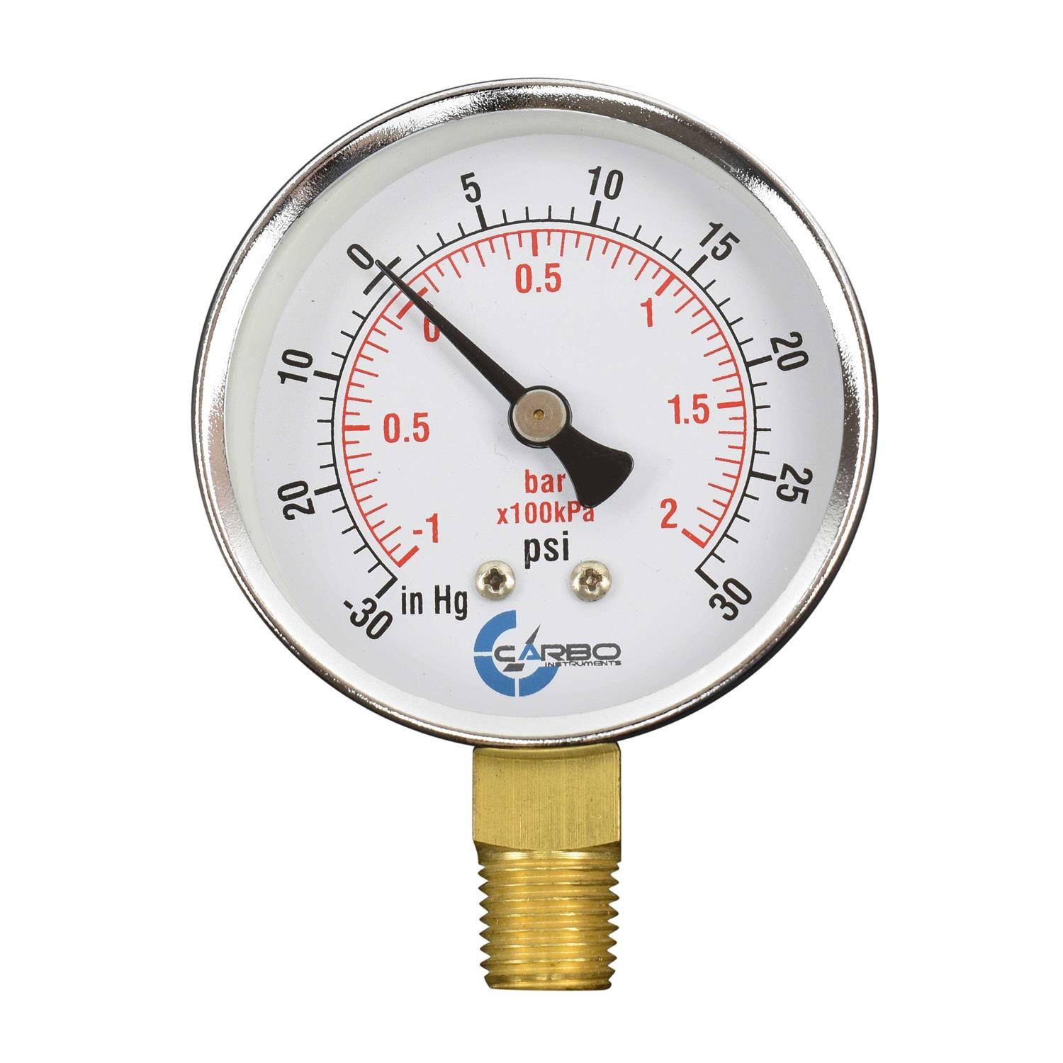 Carbo Instruments 2-1/2″ Pressure Gauge, Chrome Plated Steel Case, Dry, Compound Vacuum -30 HG – 0-30 PSI Lower Mount 1/4″ NPT