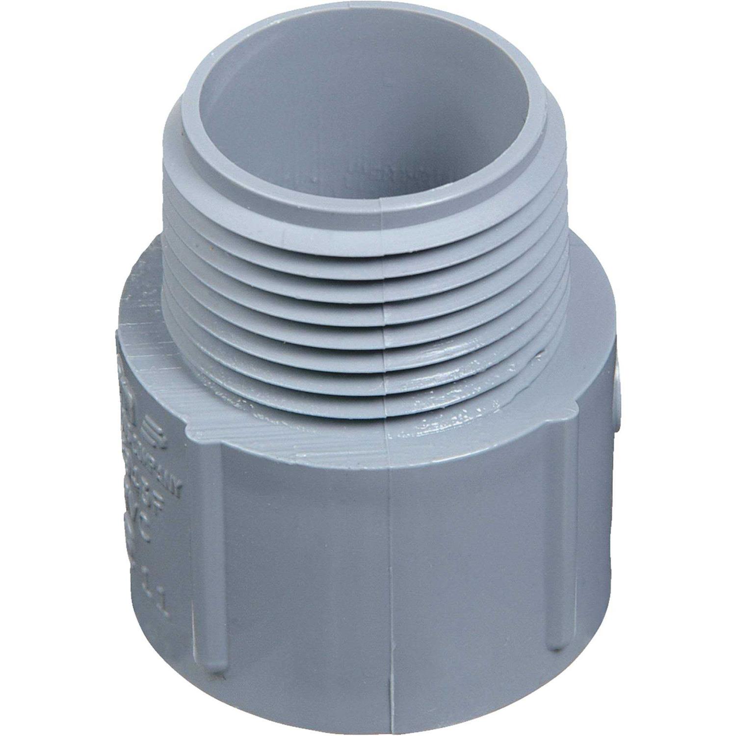 Adapter ideal for adapting PVC (polyvinyl chloride) conduit to boxes, threaded fittings, metallic systems. Male threads on 1 end, socket end on other. UL (Underwriter’s Laboratories) listed.
