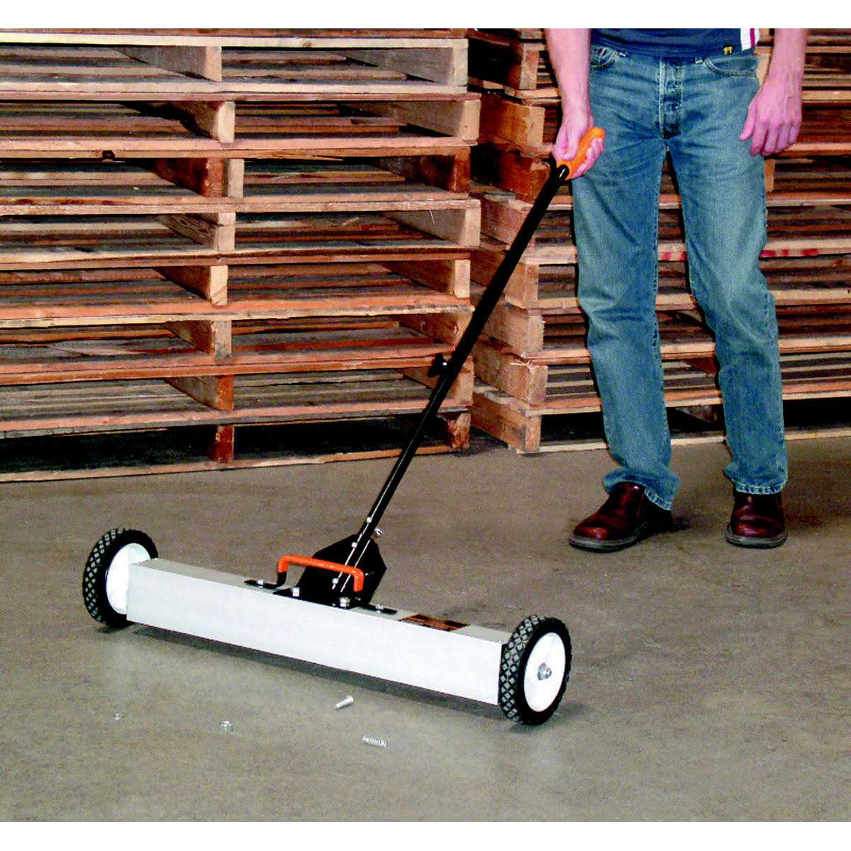 - Extra-wide sweep head for quick clean up 50 lb. magnetic pull