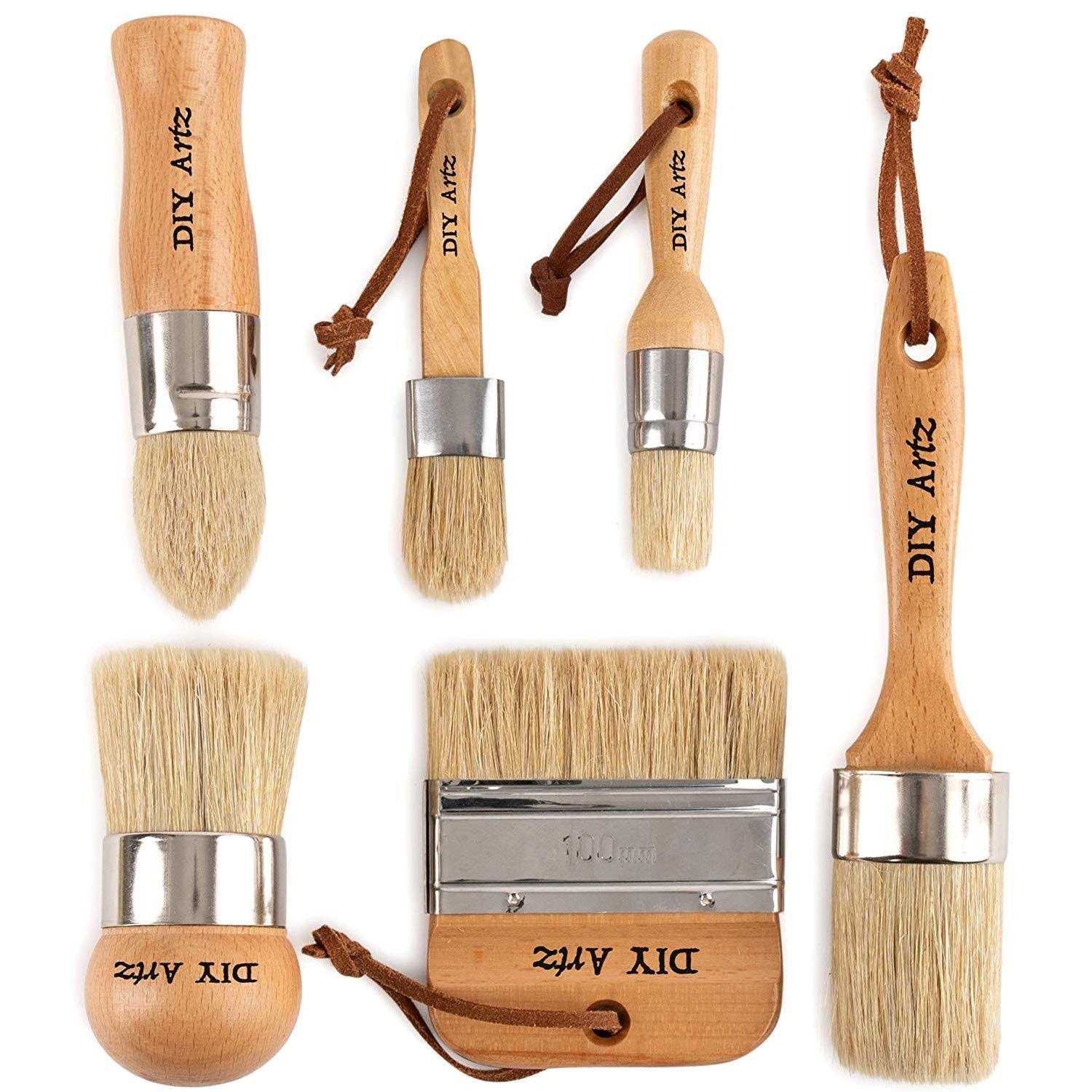 Diyartz Chalk & Wax Paint Brush (Set of 6) for Waxing & Painting Projects – 100% Natural Boar Bristles, Ergonomic Handles, Minimum Shedding – Smooth