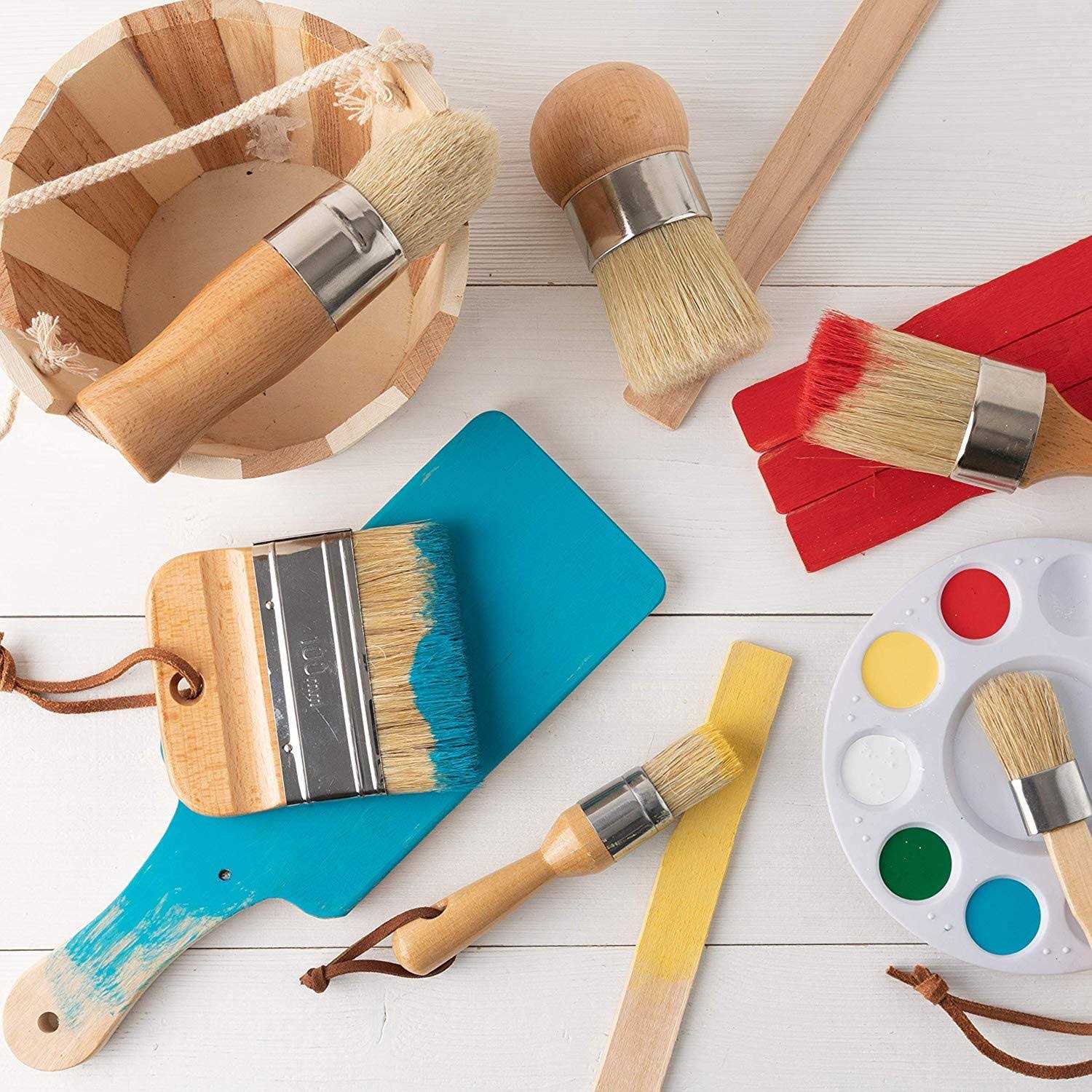 Paint Brushes by DIYARTZ. Details:Create a textured, vintage finish with DIYARTZ Chalk Paint Brush! These carefully designed wax paint brush make waxing, painting, stamping, stenciling and color-mixing easy and fun. Our round chalk paint brushes are sturdy, well made and of premium quality which makes sure they last for years to come. They not only deliver professional grade results but also assure value, longevity and resilience. Chalk pro paint brushes hold a large amount of paint and are perfect for painting large areas such as wood, furniture, canvas and more. Ergonomic and lightweight handle reduces hand fatigue and gives you more precision and control over each stroke. These versatile boar bristle oval brushes work with most chalk-based paints, wax brands, milk paint and furniture surfaces. Works excellent while painting drawers, cabinets, tables and other furniture accents. Each stroke will give you that hand painted and vintage charm that looks absolutely gorgeous.