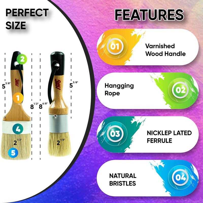 Our large Chalk Paint brush & small round paint brush are Natural Bristles paint brush, With Nickel Plated Ferrule head & Birch Wood Handle is a perfect furniture paint brush Premium Quality chalk paint wax brush with Natural Bristles and Easily gripped Wooden Handle, Delivers Quality Result on all Surfaces of furniture. Our wax brush chalk paint has Highest Paint Pick and Release,Paint brushes for furniture painting are Long Lasting on Rough Surfaces, Achieve Quality Result. 2 in 1 small Round chalk brush and Large oval Chalk paint brushes set compatible with Annie Sloan chalk paint, Chalk paint for furniture, fusion mineral paint Chalk wax, dark wax for chalk paint, Heirloom traditions paint, Amy Howard chalk paint, chalk paint wax kit, white chalk paint, grey chalk paint, Folkart chalk paint, chalked paint charcoal, chalk paint colors, milk paint brush & other Wax chalked paints.
