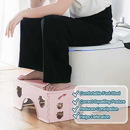 Sturdy & Safe – Our Premium Quality Squatting Compact Stool Is Made With High Quality Polypropylene Plastic Material, The General Square Shape Has Four Areas Of Support. The Surface Added Dots To Grip Your Feets In Place And Anit-slip Rubber Feets To Keeps The Stool Stable In The Bathroom To Ensure Safety.Healthy & Happy Toliet Time – Cheago Folding Toilet Step Stool Is Designed To Improve Your Colon Health, 7″ Height To Correct Squatting Posture For Better Defecation And Helps Reduces Consipation. With The Curve U Design That Fits Every Toilet, Allows For An Easier And Better Experience In The Bathroom.Cute Decor & Good Gift – With Its Morden And Stylish Outlook It Will Fits Nicely In The Bathroom, Cute Pink, Blue And Fashion Grey Colors For You To Choose, A Practical And Adorable Toilet Stool 100% Satification And Free Return, An Ideal Present For Your Family, Take It Home! Unique Design – The Foot Stool Is Well-designed For Easy Storage & Convenient Use , With The New Folding Design That Is Fast And Easy To Unfold And Use, (it Can Be Fold In A Few Seconds Put Aside While Not Using), Portable For You To Take On The Go. The Stool Is Compact After Folded But Also Maintains A Wide Footstep Area, With High Quality Material It Is Very Comfortable To Step On Just To Improve Your Everyday Toilet Experience! Non-installation – The Toilet Stool Deosn’t Require Any Set Up, Open And Use, Folded Flat For Easy Storage. Our Team Will Always There To Help If You Have Any Problem.