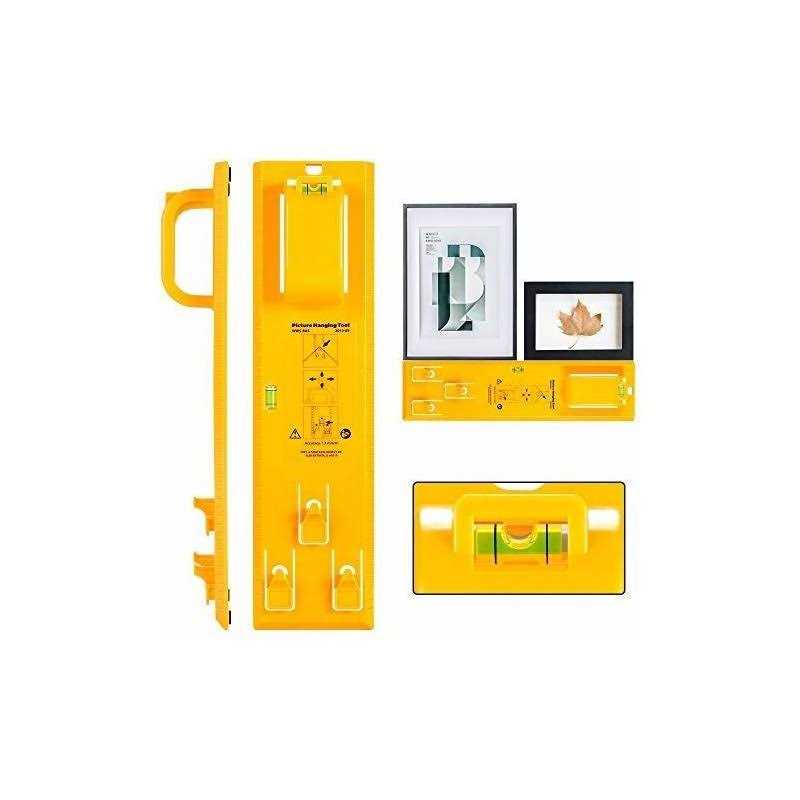 MULTIFUNCTIONAL WALL HANGING KIT: This hanging kit is ideal for hanging photos, photo frames, mirrors, clocks, artwork, plaques and diplomas. The level gauge can also be used alone to accurately measure other things such as TV stands, switches on the wall, kitchen and bathroom accessories. Material: ABS plastic. Dimensions: 34.7 x 9 x 4.8 cm. Photo frame hanging tools with level suitable for all wall materials, ruler for marking, hooks, nails and hanging level. Quick and accurate for marking: wall frame marking tool for DIY. Vertical and horizontal bubbles built into the level ensure your photos are not distorted. Perfectly marked, it will be easy to know where to place the nails. How to use: Step 1: Simply place your picture frame or other object on the hook. Step 2: Visually hang your artwork where you want to find the right place on the wall. Step 3: Press the button to mark where to put the nail, then press the nail. Step 4: Hang your artwork and upgrade it. You’re done. Notes: Be careful not to nail your hands. Do not let children under 10 years old touch them to avoid unnecessary injuries.- Brand: cinsey Color: Yellow