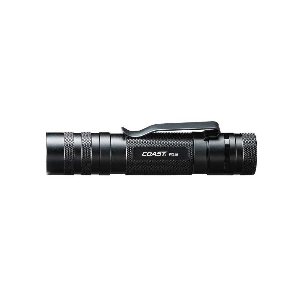 Upgrade your gear bag. With the COAST PX15R you’re always on point with a rechargeable flashlight that fits in your pocket but cuts through darkness. Featuring COAST PURE BEAM optical technology with TWIST FOCUS for seamless transitions between Ultra View Flood Beam and BULLS-EYE Spot Beam, this versatile light shines up to 1000 lumens with a max beam distance of 160 meters (524 feet). COAST Rechargeable-Dual Power technology enables the flashlight to run on either the included COAST on alkaline batteries, with a max run time of 11 hours. Constructed of top-grade materials, the PX15R
