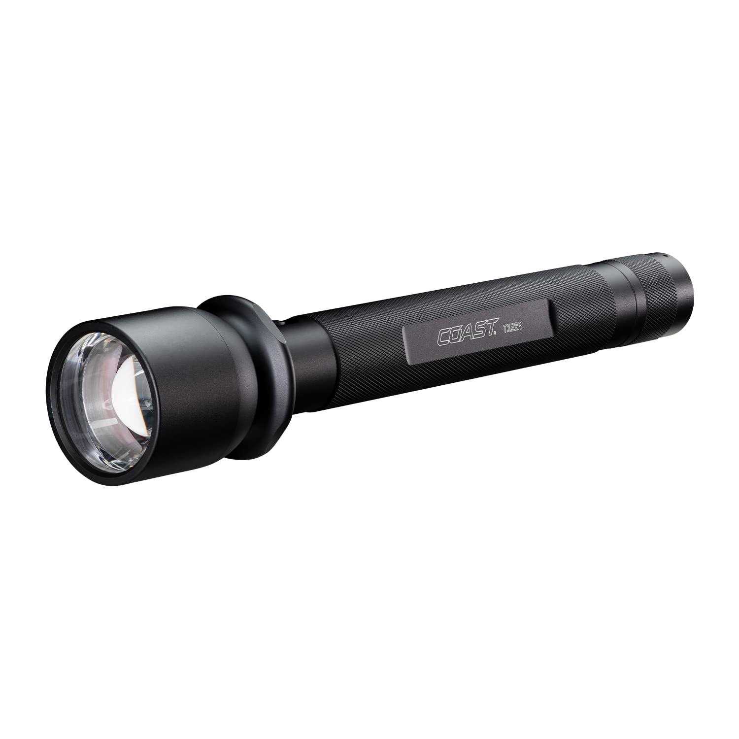 Coastâ€s new top-of-the-range torch is here – just be careful where you point it! An astonishingly powerful 2080 lumen beam (5300 lumens in 30-second TURBO mode!) will light up the night sky. The pure white beam can be focused from a broad flood to a narrow spotlight with fingertip control, locking in to preserve your chosen setting. Fully rechargeable, you can expect up to 32 hours illumination on the lowest of the three settings, with a battery-level indicator to show you how much power is left. Charging is easy, via the USB cable supplied, but the torch will also operate from 6xAA batteries if necessary, allowing you to recharge the power pack separately and carry on. You can even use the power pack to recharge other devices, such as phones, from its USB-out socket. Build quality is excellent, with an engineered aluminium case providing dependable IPX4-rated protection. 32cm long.